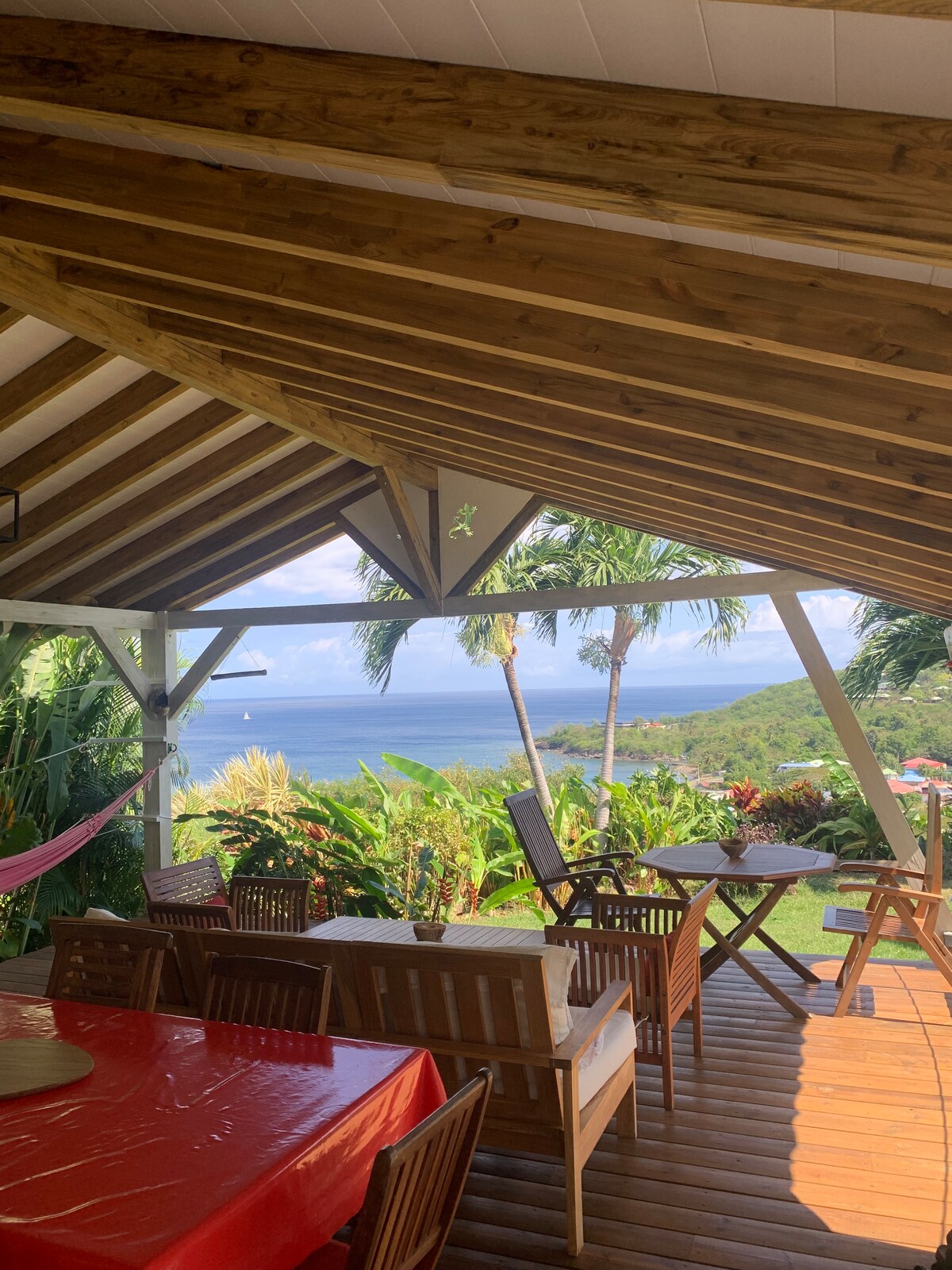 Kaz A Zot fait partie du site Les Terrasses d'Acomat. Chalet créole avec piscine privée, large vue mer imprenable, implanté dans un vaste jardin tropical. Vous vous sentirez ici comme à la maison, décoré avec soin, literie de qualité. Tentez l'expérience de vivre dehors, la nature vous entoure, le chant des grenouilles et le vent dans les palmes bercent vos nuits. Idéal pour décompresser et se ressourcer. Nous habitons sur le site et vous accueillerons en personne. A bientôt