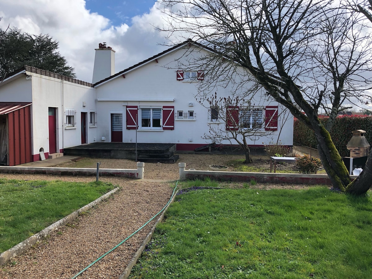 Maison de campagne avec divers jeux pour la famille ou entre amis. A disposition: - Table de ping pong - Foot golf - Snookfoot - Pétanque - Volley - Jeu de piste - Badminton - Jenga géant - But de foot - Panier de basket - Cornhole - Palet - Molky - Croquet - Jeux de société Proche de l'autoroute A11 et d'une ZAC (restaurants, centre commercial etc). Barbecue et espace extérieur privatif. Plan d'eau à proximité, les enfants sont sous votre responsabilité. Draps et serviettes inclus.
