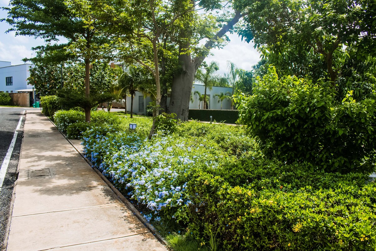 Մնացեք այս շքեղ 1 սենյականոց լյուքսում՝ Մադինա Աքքրա քաղաքում, որտեղ կա լողավազան, մարզասրահ և հուսալի շուրջօրյա հոսանք (արևային + գեներատորային պահեստային համակարգ)։ Հարմար է հեռավար աշխատողների և ճանապարհորդների համար, առաջարկում է արագ Wi-Fi, Netflix, հանգիստ տարածք կենտրոնանալու համար և ժամանակակից հարմարավետություն։ Աշխատանքից հետո հանգստացեք լողավազանի մոտ, մարզվեք մարզասրահում և վայելեք անվտանգ, նորաձև հանգիստ Աքքրայի լավագույն վայրերի մոտակայքում։ Հարմար է երկարաժամկետ, գործնական ուղևորությունների կամ մեղրամսի համար։ Մոտակայքում կան խանութներ, դեղատներ, ռեստորաններ։ Օդանավակայանից 20 րոպե հեռավորության վրա է։ Լաբադի լողափը նույնպես մոտ է։