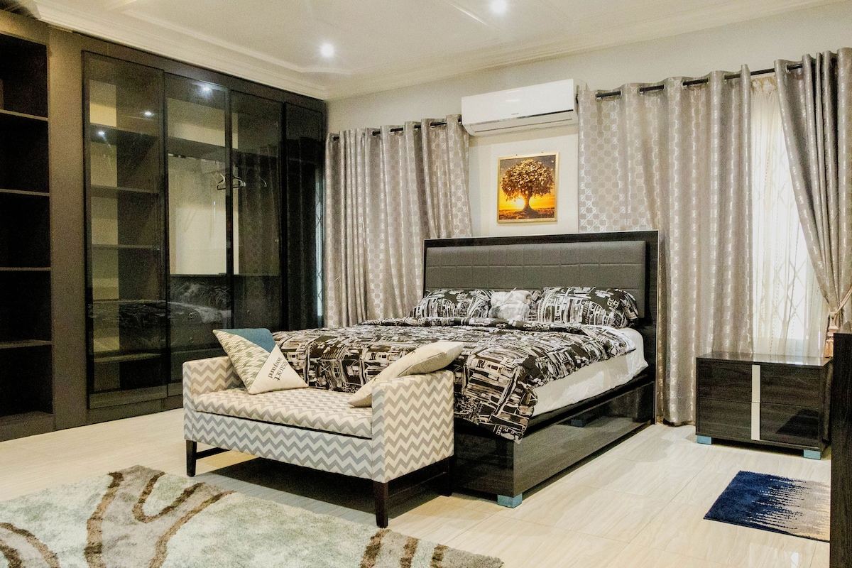 Շքեղ, նորակառույց, ընդարձակ մեկ ննջասենյակով բնակարան ՝ կարճաժամկետ և երկարաժամկետ վարձակալության համար ։ Տունը գտնվում է Հյուսիսային լեգոնի գլխավոր մասում ։ Կոտոկայի միջազգային օդանավակայանից 9,5 կմ հեռավորության վրա և Գանայի համալսարանից, Atlantic Mall - ից, Palace Mall - ից, Legon բուսաբանական այգուց 1,5 կմ հեռավորության վրա գտնվող բնակարանը մոտ է ամենուր: Սենյակում կա երկտեղանի մահճակալ, օրթոպեդիկ ներքնակ և բարձեր ՝ առողջ քնելու համար ։ Խելացի բնակարանն ունի CCTV տեսախցիկներ, որոնք իդեալական են հարմարավետության և անվտանգության համար ։