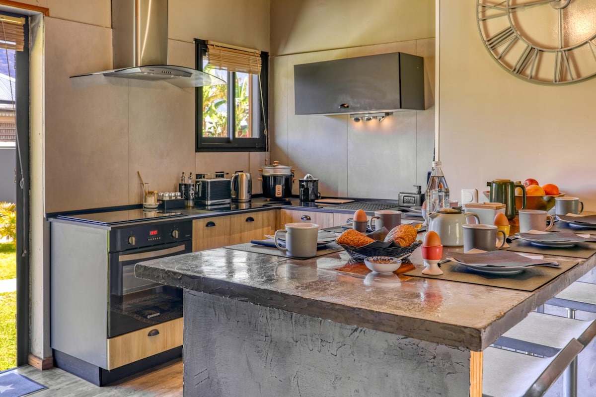 Լիովին կահավորված օդորակիչով ստուդիա խոհանոցով, այդ թվում ՝ Nespresso սրճեփ մեքենա, լոգասենյակ իտալական ցնցուղով, զուգարան, առանձին ավտոկայանատեղի, հագնվելու սենյակ, փոքր հյուրասենյակ, Wi - Fi, հեռուստացույց, 2 առանձին բացօթյա տեռասներ, մեկը ՝ սպա կենտրոնի մոտ ՝ հյուրասենյակով, մյուսը ՝ անտառի մեջ ընկղմված ։ Դուք գտնվում եք աշխարհից կտրված կոկոնի մեջ ՝ Ռեյունիոնեսյան կենդանական և բուսական աշխարհում: Հնարավորություն է անվտանգ կայանել ձեր մեքենան բակում: Մուտք դեպի ամբողջովին առանձին ջակուզի