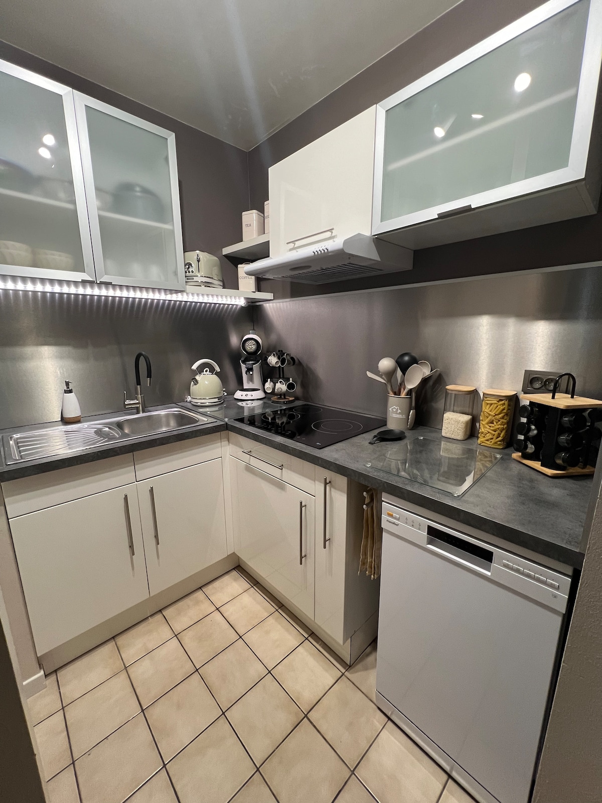 Scandinavian-inspired, this apartment has been designed so that you can share it between friends, family but also between work colleagues, by modulating the place to your convenience. The high ceilings and rounded windows give you will allow you to benefit from natural daylight but will give you also the feeling of being in a unique place. Cook, watch TV, eat, drink coffee, relax, but Above all, enjoy this unique place!