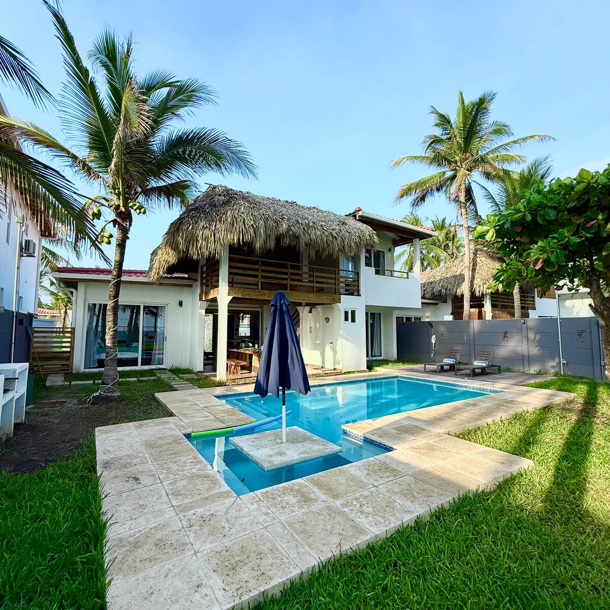 Գեղեցիկ լողափնյա տուն ՝ դեպի ծովը ։ Ներառում է հյուրատուն ։ Այն ունի 4 ննջասենյակ ։ 3 1/2 լոգասենյակ, լողավազան և ցանցաճոճ տարածք ։ Սալվադորի օդանավակայանից 20 րոպե հեռավորության վրա, Սերֆ քաղաքից 30 րոպե հեռավորության վրա Ամատեկամպո մասնավոր լողափում գտնվող այս գեղեցիկ տունն առաջարկում է ավազ, ծով և շքեղ ապրելու առատություն ։ Փաթեթավորված ամեն ինչով ՝ անմոռանալի հանգիստ կազմակերպելու համար, օվկիանոսի ափին գտնվող այս աներևակայելի տունը նույնպես շլացուցիչ ավազե լողափով է ։ Վերցրեք ձեր sunscreen եւ եկեք նայենք..