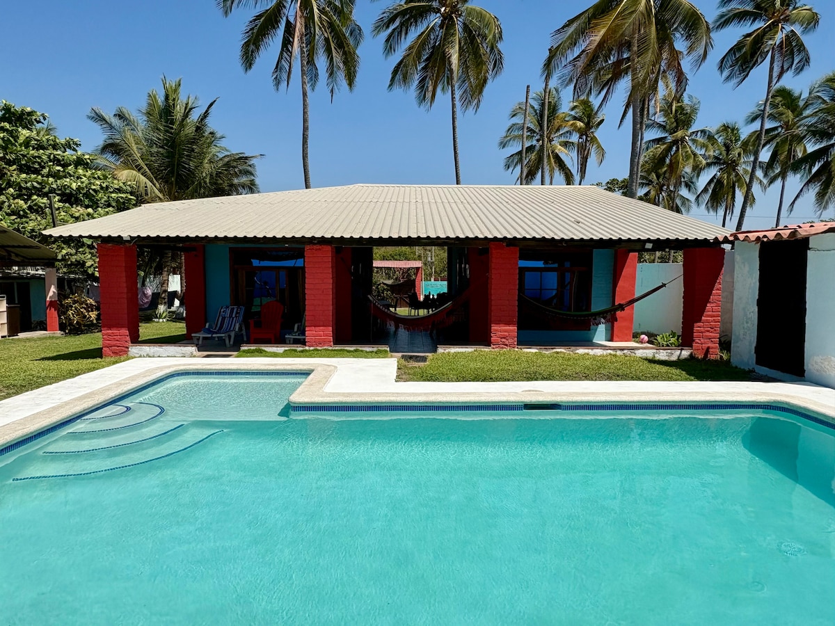 Առաջնային գծի լողափնյա տուն՝ դեպի օվկիանոս, լողավազանով և ջակուզիով, լյուքս 6 հոգու համար՝ 150–179 սմ մահճակալով, եռահարկ մահճակալով, բազմոց-մահճակալով, հեռուստացույցով, օդորակիչով, Wi-Fi-ով, մեծ լոգասենյակով։ Վայելեք արևամուտը Պլայա Էլ Պիմենտալում 🌴