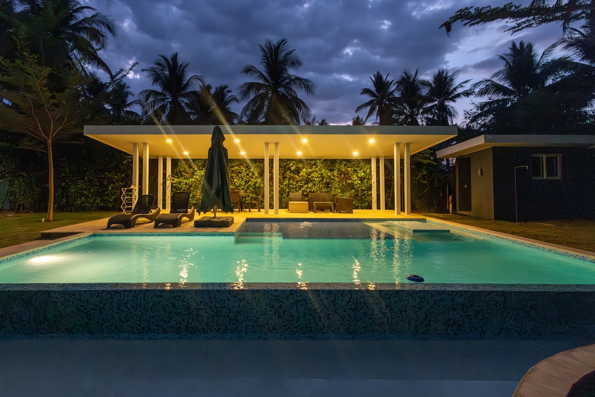 Welcome to your private beachfront sanctuary. Just steps from the golden sands of Playa Costa del Sol, this modern-meets-rustic eco-home invites you into a space designed for connection, rest, and unforgettable moments. Surrounded by swaying palms and cashew trees, you’ll find a serene escape complete with a private pool, thoughtful comforts, and optional local experiences that transform your stay into something truly special.