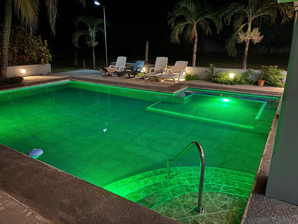 Hay muchos lugares donde quedarte! Pero aquí te ofrecemos privacidad por más de 24 horas! Es una propiedad entera solo para tu familia! Porque compartir la picsina o los espacios! Si aquí podrán estar completamente solos! Aunque NO es frente al mar, si está muy cerca! No es condominio ni un pequeño lugar! Por su precio esto es el paraíso , rodeado de palmeras donde podrás descansar! Restaurantes cerca , renta de lanchas para disfrutar! Entras a las 12 m y sales a las 2 pm del siguiente día. VEN
