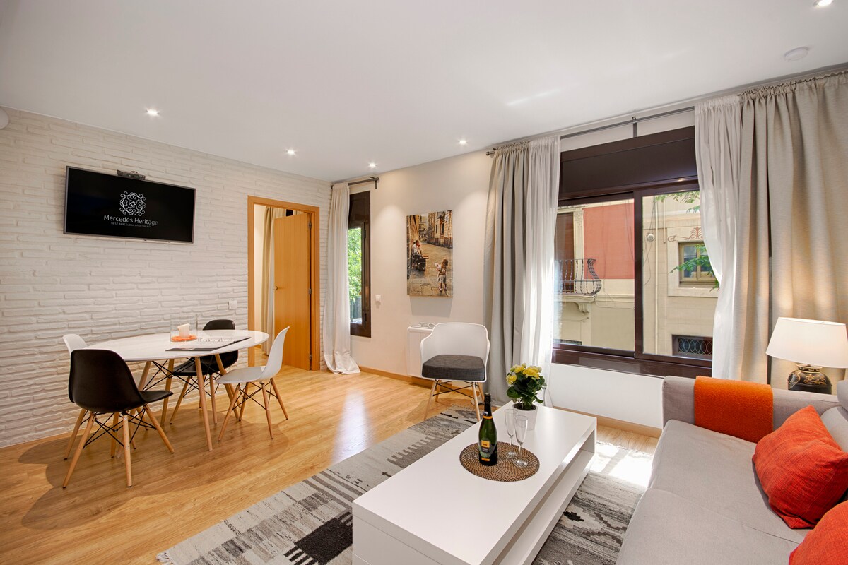 Այս հինավուրց տունը ՝ դասական ճարտարապետական մնացուկներով, վերանորոգվել է և բաժանվել վեց շքեղ մեկսենյականոց բնակարանների: Մեծ պատուհանները, սպիտակ միկրոալիքային վառարանի հատակները, դիզայներական կահույքը, տեղական պահարանների կողմից ստեղծված խոհանոցը, Կորադա Ֆեռերես ճարտարապետության ստուդիայի կողմից նախագծված պահարանները և աշխատանքային սեղանները, հաղորդում են ինտերիերի դիզայնի չափանիշներ և անհատականություն: Սպասիոնուսություն, պայծառություն և հիանալի սարքավորումներ Բարսելոնայի Գոթական թաղամասում: