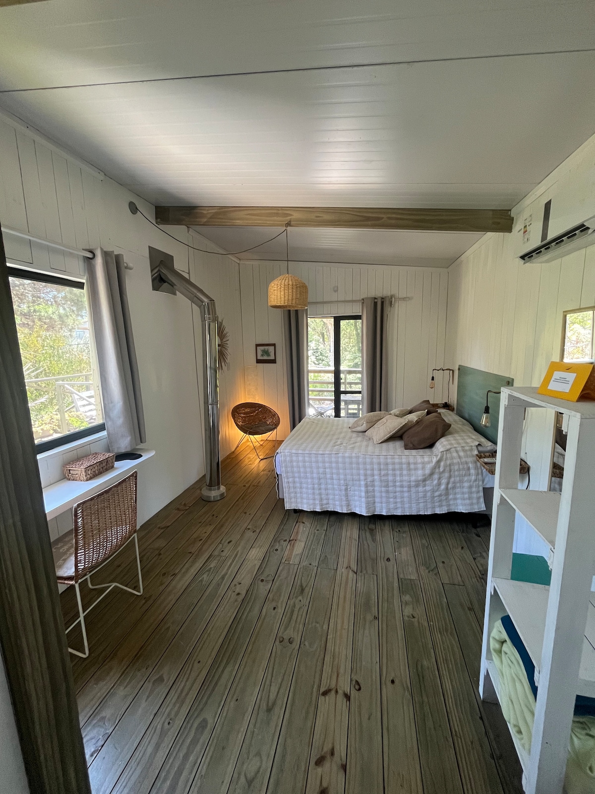 Գեղեցիկ նոր տուն Պունտա Ռուբիայում ։ Ջերմ 36 մ2 հանգիստ և անվտանգ տարածքում ՝ լողափից մեկուկես թաղամաս հեռավորության վրա, սուպերմարկետներով և ոտքով քայլելու հեռավորության վրա սնունդ գնելու տեղերով ։ Պայծառ, հարմարավետ, գյուղական, կահավորված խոհանոցով և մեծ աստիճաններով տախտակամածով ՝ վայելելու արևի անկումը ՝ լսելով ծովի ձայնը... Փոքրիկ ապաստարան, որը միավորում է ճարտարապետությունը, արվեստը և բնության նկատմամբ սերը ։