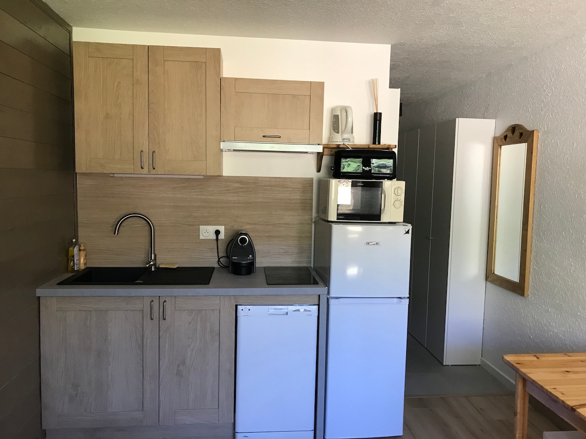 Վերանորոգված աշնանային 2022 թվականի բնակարան Բնակարանային նստավայր LE MUSTAG բնակության վայրը կենտրոնական Պլանի սրտում: Ամբողջովին վերանորոգված և կահավորված ստուդիա երկու հոգու համար (ջեռոց - ինդուկցիոն սալօջախ - ամանալվաց մեքենա ՝ մանր կենցաղային տեխնիկա) Փոխարկելի մահճակալ 160 սմ - նոր անկողնային պարագաներ Հարավային պատշգամբ Լեռնադահուկային պահարան Բնակավայրը գտնվում է իդեալական վիճակում ՝ խանութների և ծածկված պատկերասրահի մուտքի մոտ Լանջերի ստորոտում և ESF - ի հավաքույթ