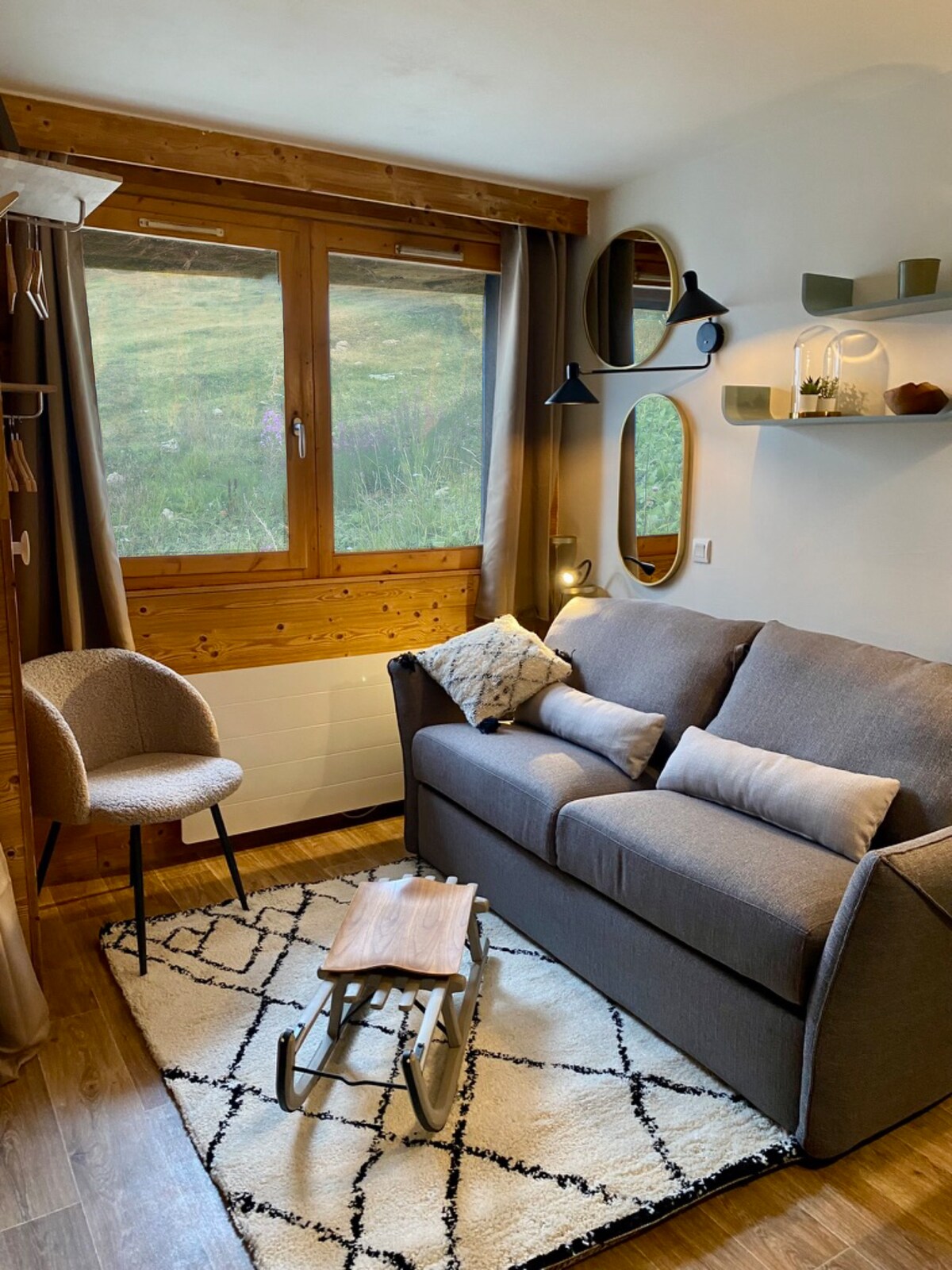 Շատ լուսավոր հարավում գտնվող բնակարան ՝ պատշգամբով ։ Լեռնադահուկային մուտք 300 մ հեռավորության վրա ։ 1 - ին հարկի շալեի տիպի բնակության վայր Հանգիստ բնակելի տարածք ՝ 300 մ շառավղով բոլոր հարմարություններով Մոդուլային ննջասենյակ ՝ երկտեղանի մահճակալ կամ 2 մեկտեղանի մահճակալ հատակին և 2 մեկտեղանի մահճակալ վերին մակարդակում 2 Երկտեղանի բազմոցներ հյուրասենյակում Շատ շատ պահեստ - Կահավորված խոհանոց Ծածկված և փակ կայանատեղի ՝ մասնավոր վայր Բնակավայրի ստորոտում յուրաքանչյուր 15 րոպեն մեկ անվճար երթուղայինով մուտք գործեք Լա Պլանի այլ գյուղեր