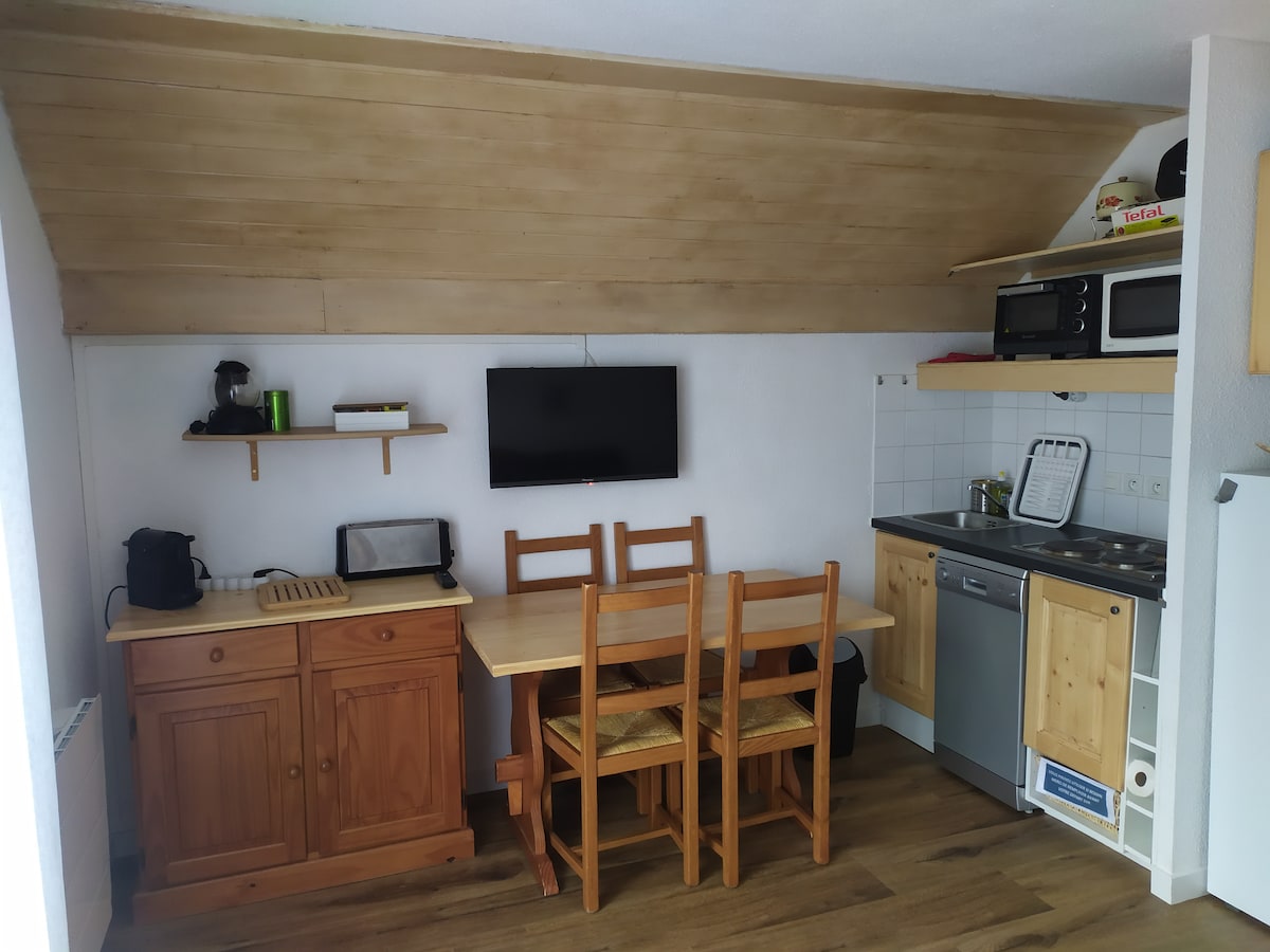 Ստուդիայի տնակ, որը վերանորոգված է 17մ2, իդեալական է 2 հոգու համար, բայց կարող է տեղավորել 4 մարդ Այն ունի 4 մահճակալ, հյուրասենյակում երկտեղանի բազմոց մահճակալ, իսկ մուտքի մոտ ՝ 2 ծալովի մահճակալ 2րոպե զբոսանք լեռնադահուկային վերելակներից(150 մ) և բոլոր խանութներին մոտ, անվճար կանգառը գտնվում է նստավայրից անմիջապես ներքև Բնակարանում կա ամանալվաց մեքենա, սրճեփ մեքենա, տոստեր և թեյնիկ, ինչպես նաև դահուկային պահարան Անկողնային սպիտակեղենը, սրբիչները և մաքրումը ներառված են Անվճար Wi - Fi