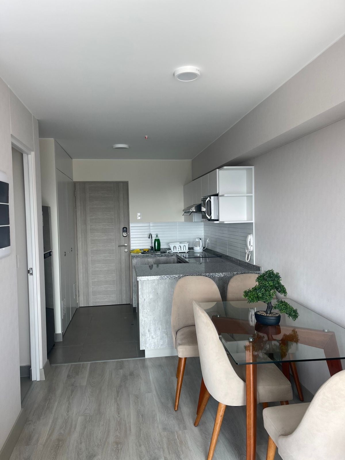 Moderno dpto en 4to piso de 2 hab con camas de dos plazas. Sala comedor amplia con sillones, Smart TV y Wi-Fi rápido. Cocina abierta equipada con refrigeradora, cocina, microondas y utensilios. Baño con agua caliente (terma). Ubicado en Av. Aviación, cerca de La Rambla y Av. Javier Prado (ESTACIÓN LA CULTURA Y EL GRAN TEATRO NACIONAL). Zona segura con cámaras externas. Ideal para estadías cortas o largas. ¡Reserva hoy!