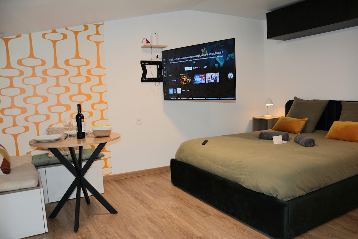🌿 Հմայիչ 1 ննջասենյակով բնակարան 🍀 Անվճար կայանատեղիով ✅️ ➡️ Գտնվում է Անգուլեմի Մադլեն թաղամասի սրտում գտնվող հին ⚜️ շենքում ⚜️ Երկաթուղային կայարան 🚆 ՝ 🚶7 րոպե Քաղաքի կենտրոն ՝ 🚶♂️12 րոպե Բոլոր խանութները/հասարակական տրանսպորտը ՝ 🚶🏽♀️2 րոպե 😴 Ննջասենյակ ՝ երկտեղանի մահճակալ և 🔅լուսավորություն, որը 🔆 կարգավորվում է հեռակառավարման վահանակի միջոցով ⚙️ 💤 Թախտ 🛜 Շատ արագ Wi-Fi 📺 55" Սմարթ հեռուստացույց 🎧 Տնային կինոթատրոն 🍿🎥 NETFLIX 🍺| ⛱️Տեռաս (🔜 2026 թ․ ամառ) 2 մահճակալով 2 հյուրի համար ամրագրելու դեպքում գումարել 10 €/անձ/օր