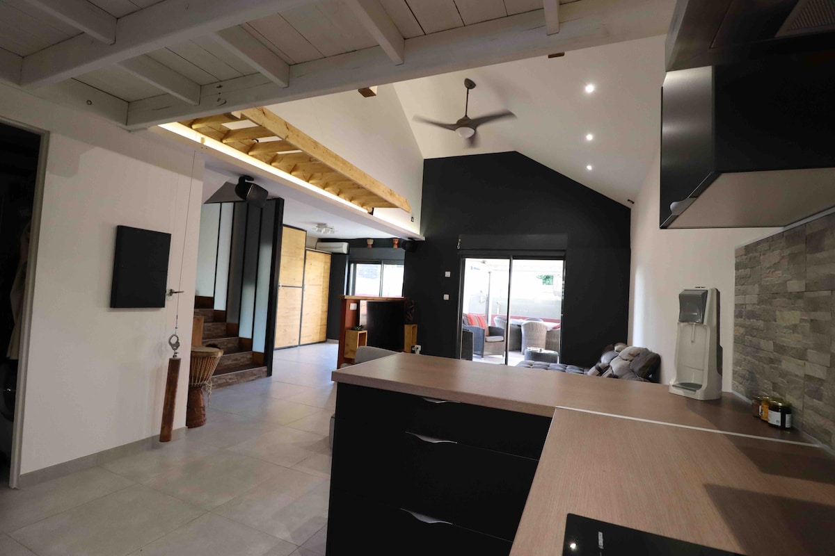 Location à La Réunion LA SALINE-LES-BAINS Maison mitoyenne avec terrasse + 130m2 Charmante maison mitoyenne rénovée récemment â quelques pas du lagon avec piscine à l’eau de sel pour 4 adultes et 2 enfants. Le point fort de la maison est sa proximité du lagon et de tous les commerces du centre ville de la Saline-les-bains (épicerie, bar restaurant, boulangerie, pharmacie, médecin) du lagon et de sa piscine avec système de nage à contre courant et hydro-massant.