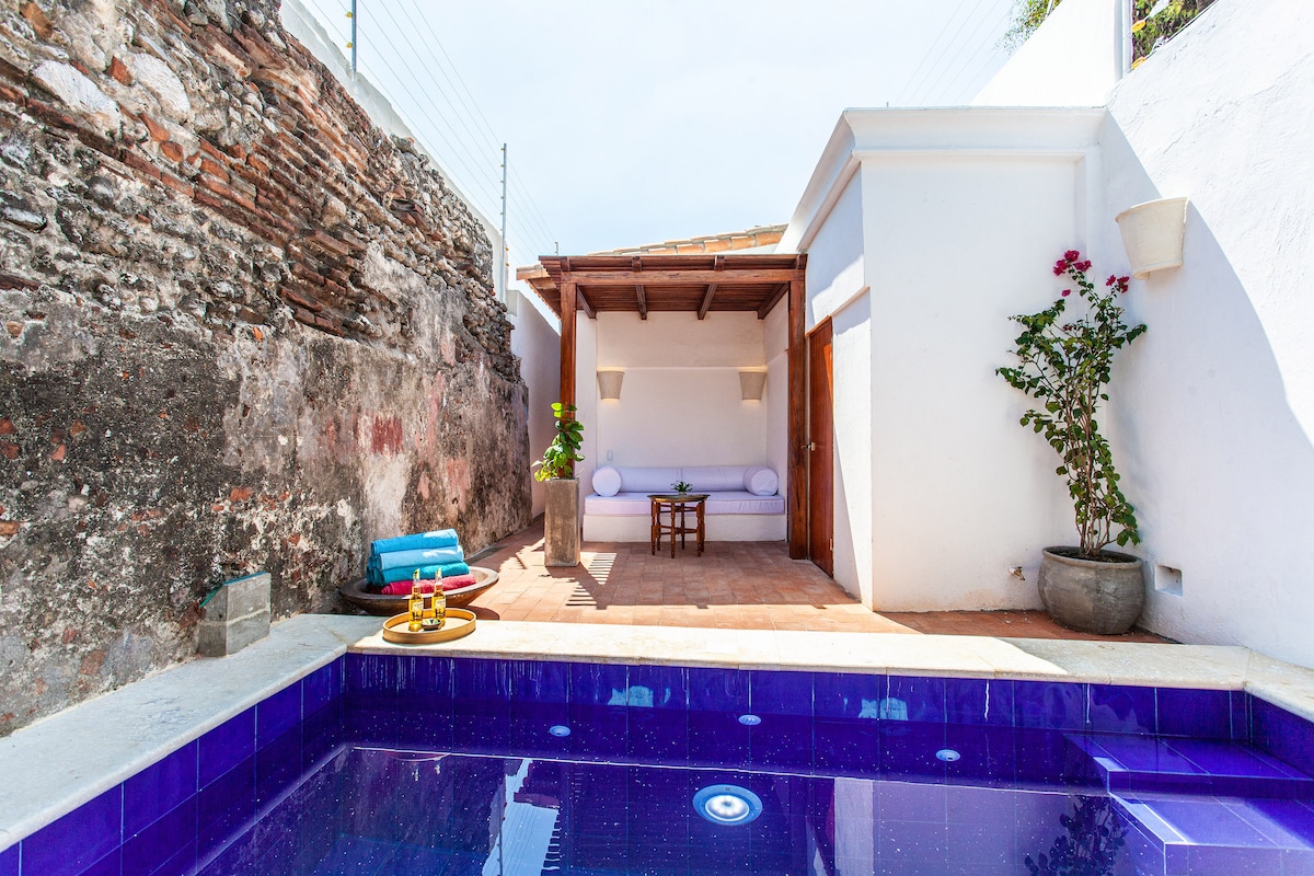 Luxury colonial villa in Getsemaní with 24/7 staff for daily room cleaning and security. This iconic 6BR home features a private pool, rooftop terrace and daily breakfast. Located steps from Café Havana, it blends 200‑year‑old architecture with modern design for an unforgettable Cartagena stay. Recognized by Airbnb for having one of the best swimming pools in the world and featured in international architecture and lifestyle publications.
