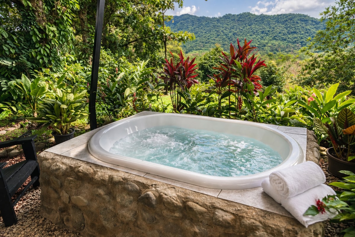 Լուկուլուկ Գարդեն և Անտառ «Հանգստացնող Վիվո Վերդե» Ընկղմվեք բնության մեջ, վայելեք ջակուզի, արտաքին ցնցուղ և ուսումնասիրեք արահետները, գետերը և սեփական լեռը: Ես թռչուններ, կապիկներ և լապաներ եմ նկատում իրենց բնական միջավայրում ։ Հանգստացեք, հանգստացեք և վերապրեք ձեր էներգիան այս հարմարավետ և մասնավոր կանաչ հանգստի մեջ, որը իդեալական է ընտանիքների, զույգերի կամ խմբերի համար, որոնք փնտրում են իսկական և վերակենդանացնող փորձառություն ։