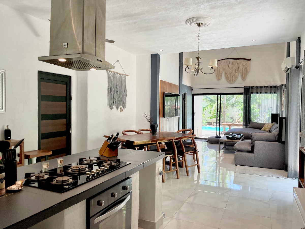 Բարի գալուստ ձեր մասնավոր հանգստի վայր՝ Լա Վելետա 🌿 Կենտրոնից ընդամենը 7 րոպե և լողափից 15 րոպե հեռավորության վրա գտնվող այս տունը առաջարկում է երկու աշխարհի լավագույնը՝ դեպի քաղաք հեշտ հասանելիություն և ջունգլիների խաղաղ մթնոլորտ։ Ձեր հարմարավետությունն ու անվտանգությունը առաջնահերթ են ։ Տունը պրոֆեսիոնալ կերպով մաքրվում և մանրազնին մանրէազերծվում է յուրաքանչյուր այցից առաջ։ Այս հմայիչ բոհեմական հանգստի վայրը գտնվում է մայաների խիտ ջունգլիների տեսարանների մեջ։ Ամբողջ սեփականությունը բացառապես ձերն է, կա մասնավոր լողավազան և 4 հեծանիվ
