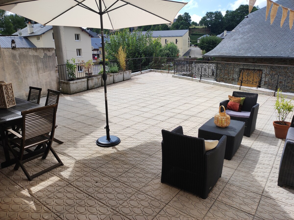 Ideal for relaxing, hiking and biking, cross-country skiing on the Aubrac plateau, you will enjoy the house for the large wooden terrace, the view of the village, south face. You'll love the warm athmospher of the large living room, the big cozy bed and the tranquility. For winter, the house is insulated and heated. Private car charging outlet & remote work space, wifi. Supermarket, bread depot, pharmacy, doctor and nurses in the village about 1 km away.