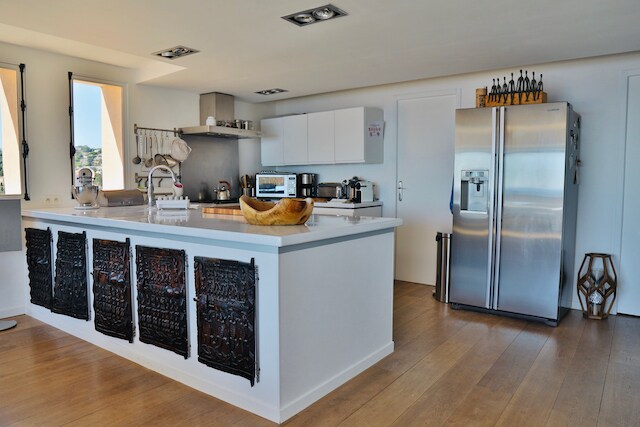 5 storey luxury 175m2 16th Century townhouse in the heart of medieval Saint Paul de Vence, stunningly renovated with a seamless blend of historic authenticity and luxurious Provençal modernity, and situated overlooking the ramparts giving breathtaking panoramic views of the sea and the mountains. The 3 generously proportioned air-conditioned suites (each 35m2) with en-suite bathrooms sleep 6 guests, and the house has a beautiful open plan fully-equipped kitchen/dining room.