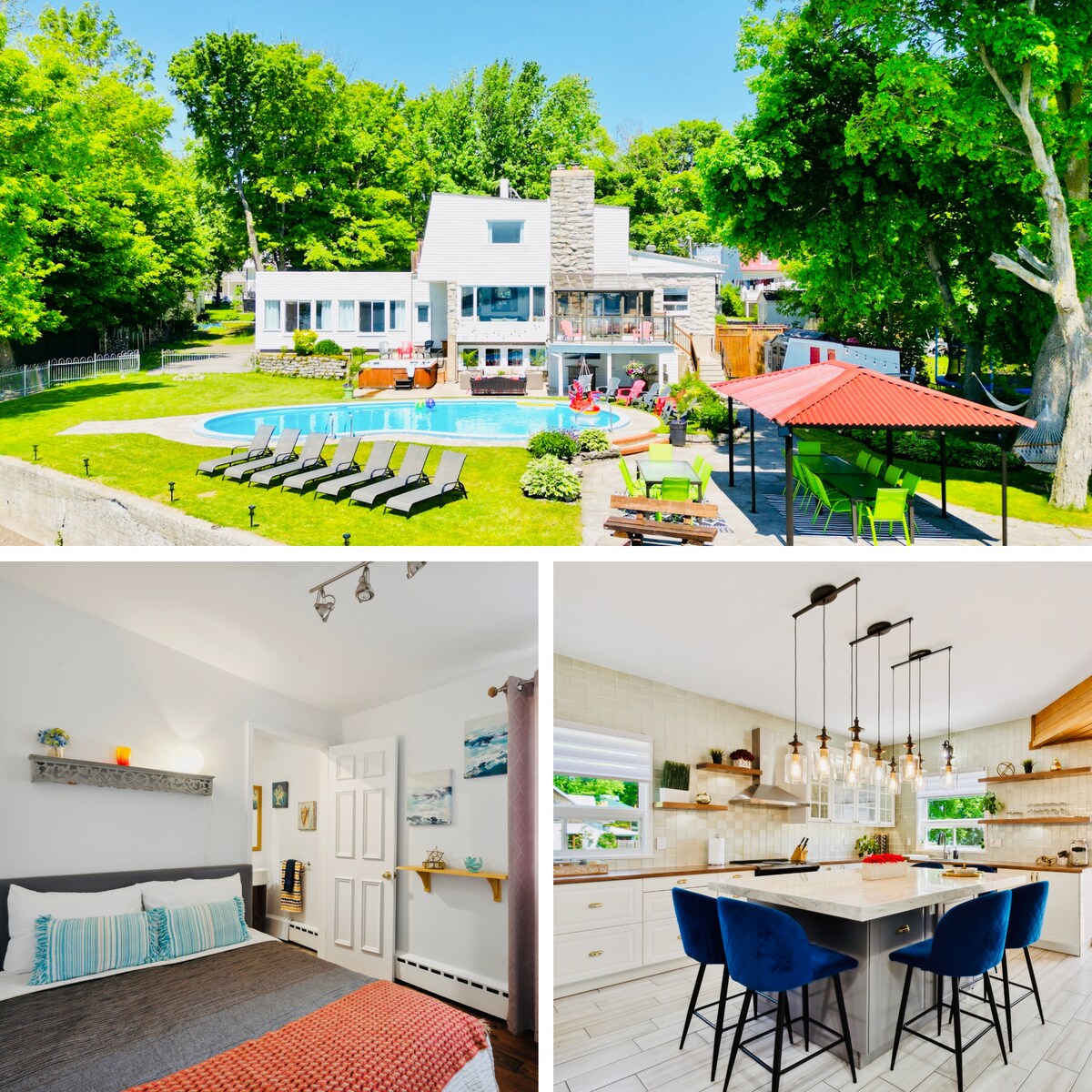 We open the doors to our beautiful house on Île d'Orléans. Situated on a 1-acre property with mature trees and a breathtaking view of the St. Lawrence River, come and recharge in the countryside, just 20 minutes away from Old Quebec. On-site amenities include a spa, indoor and outdoor wood-burning fireplaces, BBQ, accommodation for 10 people, and 3 bathrooms. Vineyards, local products, and old-world charm are just a few minutes drive from the house. CITQ: 311604