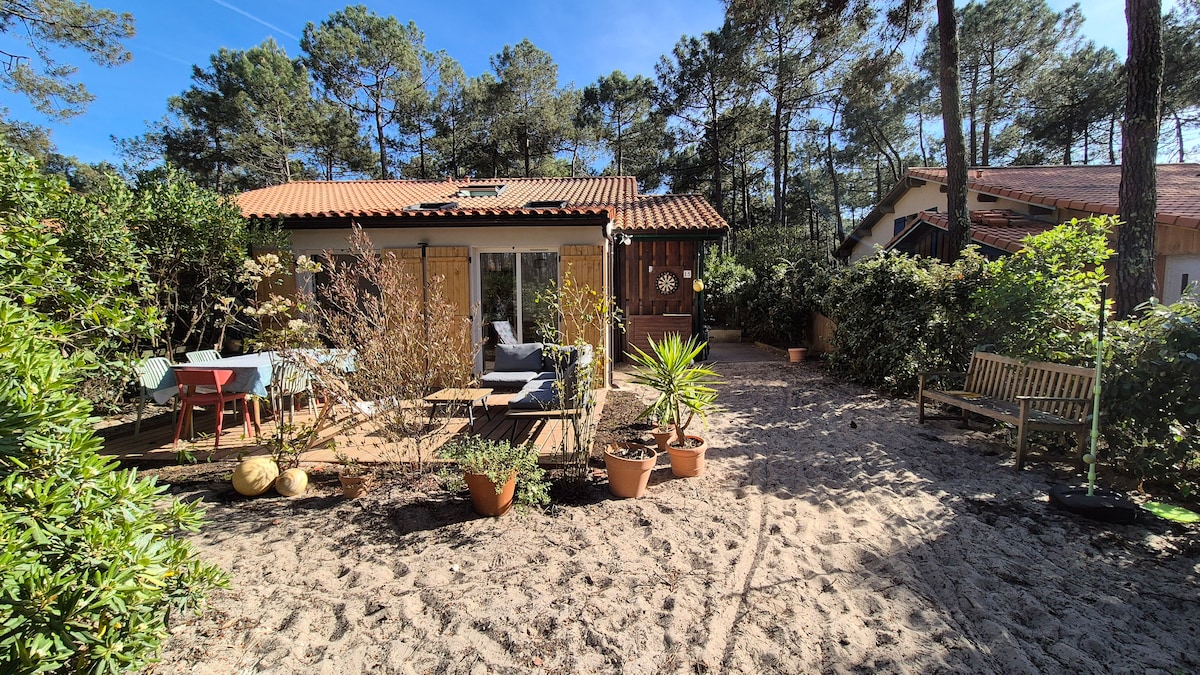Meublé de tourisme 3 étoiles - classement 2026. Maison avec jardin rénovée et typique de la région à Lacanau Océan dans un cadre paisible, intimiste et ressourçant au cœur de la nature. Le logement entier est idéalement situé dans la Pinède, à 10 minutes à pied de la forêt, de la plage et du centre ville. La résidence pavillonnaire, d'environ 120m², est lumineuse et aérée. Elle dispose de trois chambres, deux salles de bain et deux terrasses. Elle est entourée par un jardin de 500m².