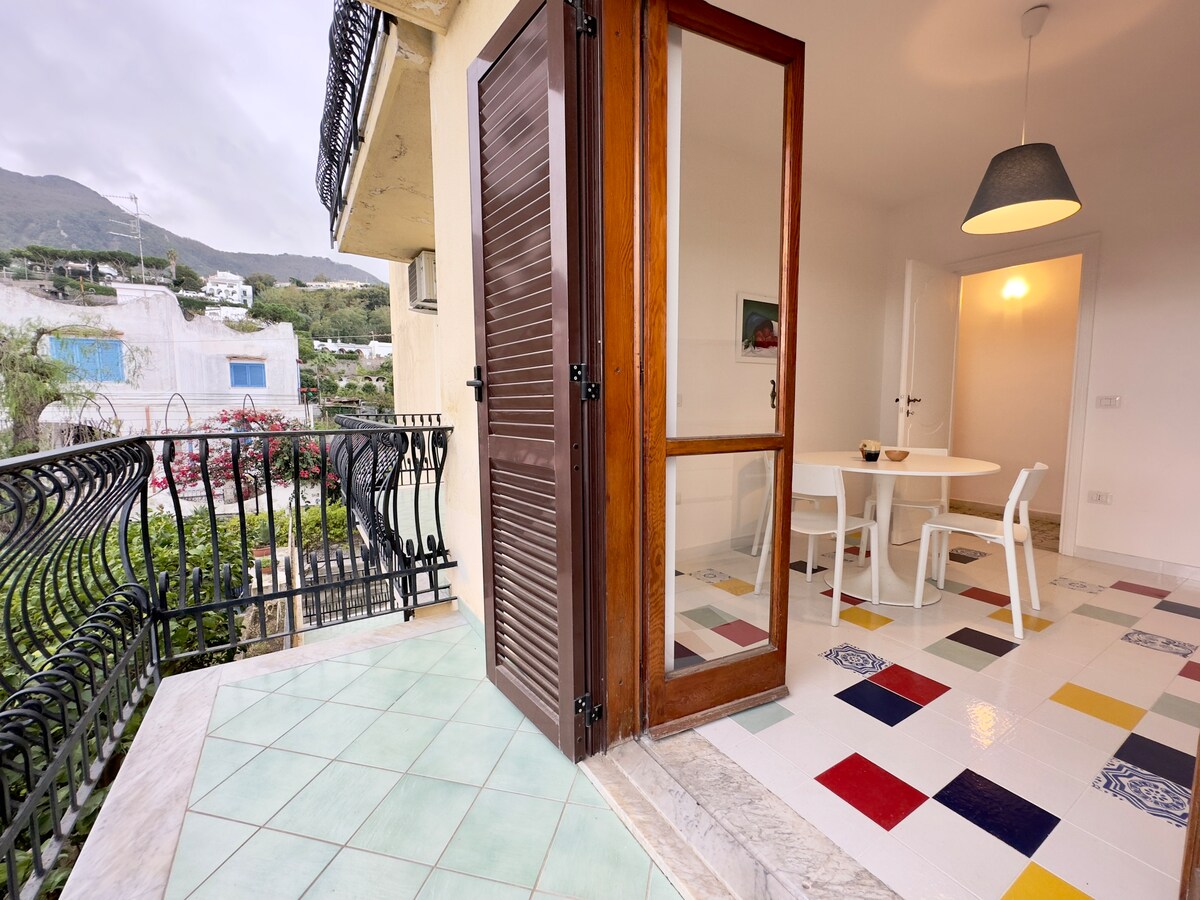 Գտնվելով Lacco Ameno - ի հիմնական կուրսում ՝ երկտեղանի ննջասենյակի, բազկաթոռի մահճակալի, լոգասենյակի, խոհանոցի ։ Մեծ համայնապատկերային տեռասը, որտեղից կարող եք հիանալ Լակո Ամենո նավահանգստով և դրա «սնկով », հագեցած է արևի տակ ճաշելու և պառկելու համար: Պարզապես իջեք ներքև ՝ ամեն ինչ հասանելի դարձնելու համար. լողափեր, ավտոբուսի կանգառ, տաքսի, կայանատեղի, սուպերմարկետ, բարեր, ռեստորաններ, գնումներ և Ս. Մոնտանոյի գեղեցիկ ծովածոցից և Պիտեկուսե թանգարանից 1 կմ - ից պակաս հեռավորության վրա: