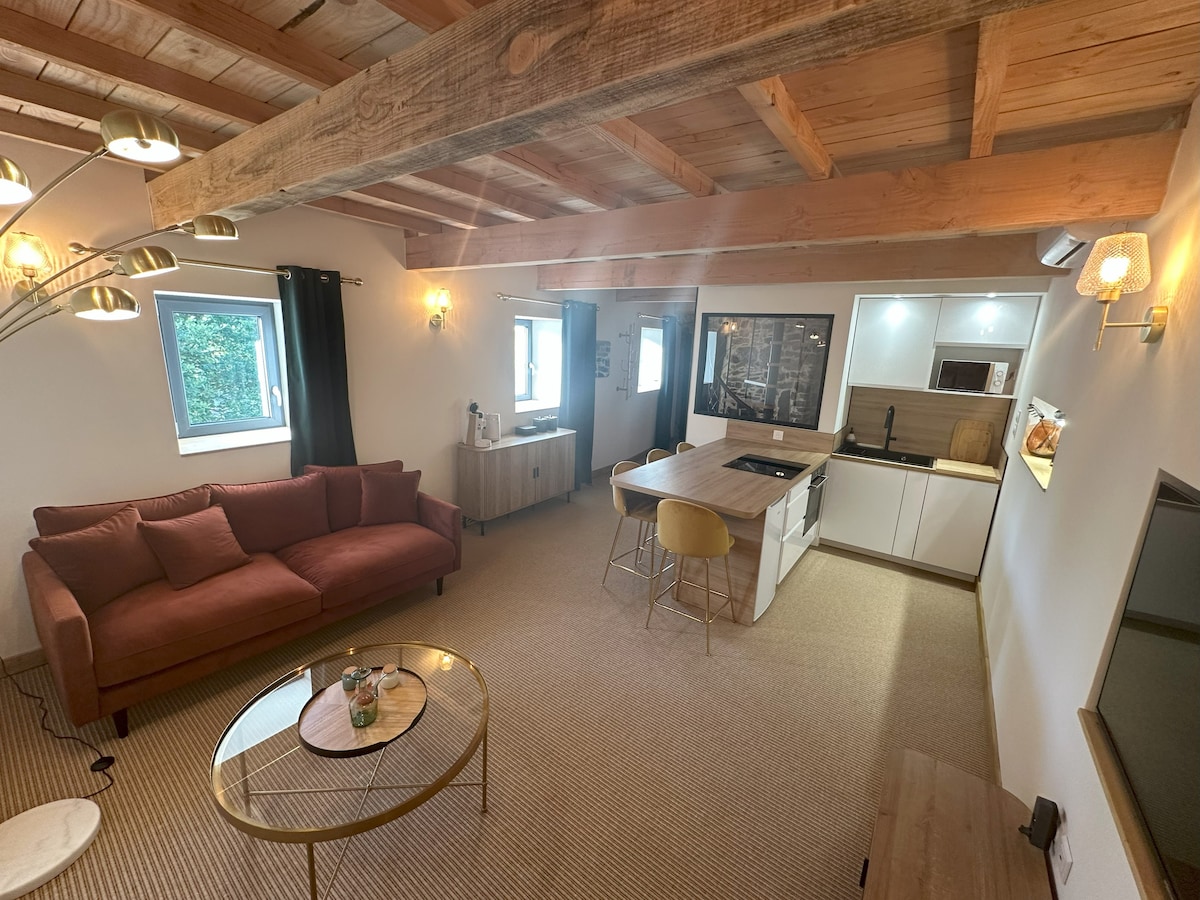 Petit gite cosy au rdc de notre habitation principale, avec entrée indépendante, petit jardin privatif et bassin où nagent paisiblement nos poissons asiatiques. Ce studio de 22m2 se compose d'une baie vitrée donnant accès à la cuisine avec tout le nécessaire, d'une salle d'eau avec wc, douche et lavabo, ainsi que d'un espace chambre/salon . Idéalement situé pour découvrir tous les attraits touristiques de l'Ardèche. Habitants sur place nous aimons accueillir nous-mêmes nos voyageurs.