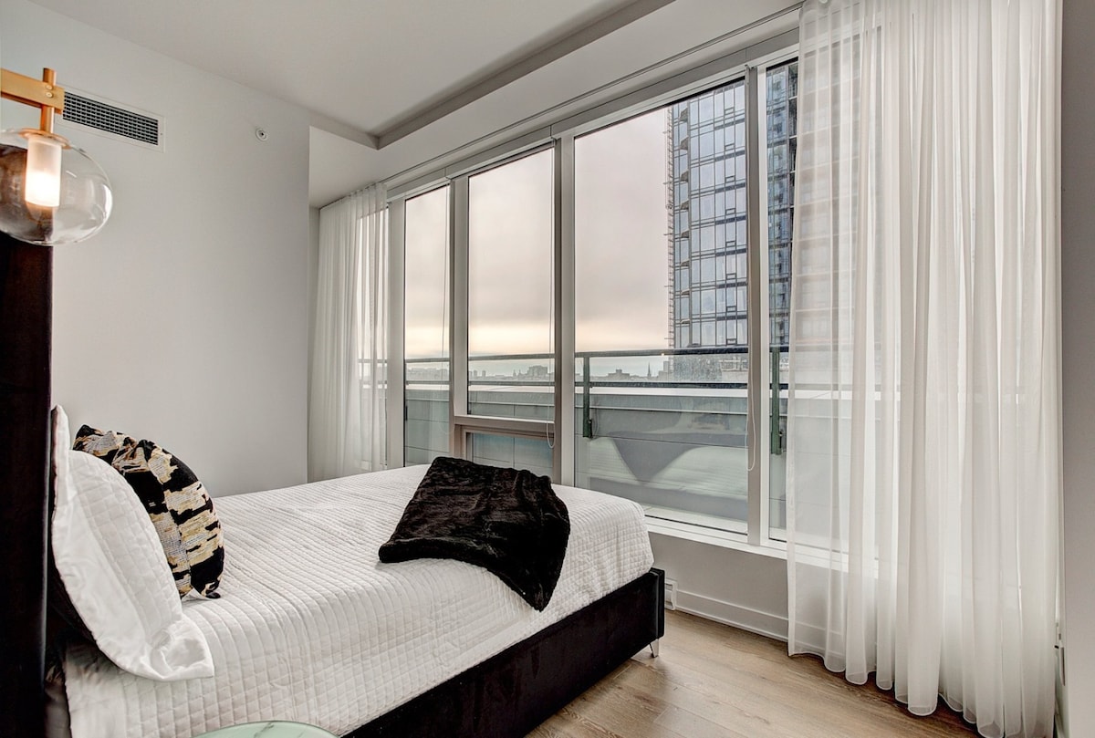 Վայելեք ձեր հանգիստը քաղաքի սրտում ։ Բոլորովին նոր TDC 2 քաղաքի շքեղություն ՝ Bell Center - ի անմիջական մուտքով: Հարմարավետ եղեք մեր լիովին կահավորված և կահավորված մեկ ննջասենյակով կոնդոմինիումում ՝ սեփական պատշգամբով ։ Ձեր այցը ներառում է շոգեբաղնիք, լողավազան, մարզասրահ, սքայլաունջ, խաղասենյակ, լաունջ և մի քանի մանղալներով տեռաս ։ Անվճար ստորգետնյա կայանատեղի ՝ մետրոյից ընդամենը րոպե հեռավորության վրա ։ Առանց դուրս գալու ՝ քաղաքը ձերն է ուսումնասիրելու համար ։ Բացի այդ, կատարյալ այցի համար հանգստացեք անվճար Netflix - ով