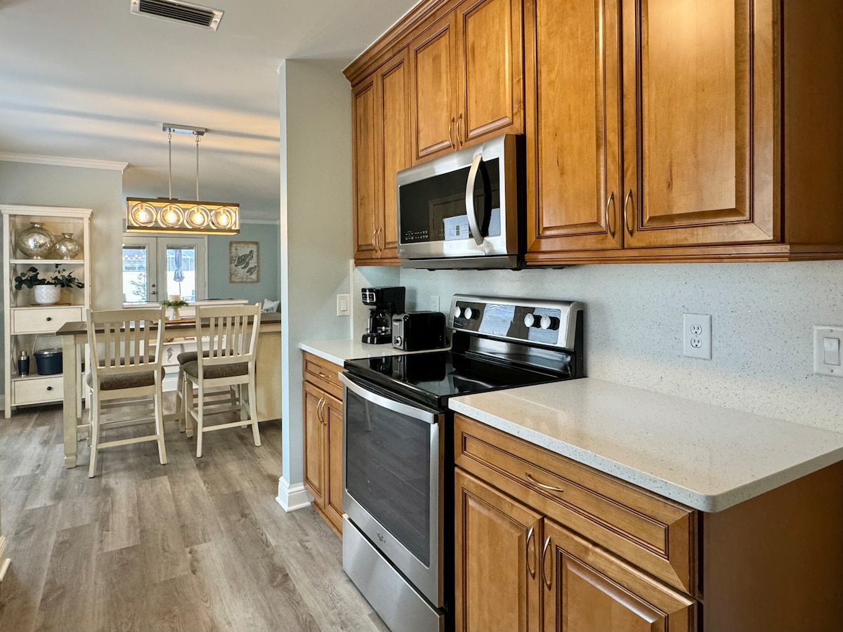 Հմայիչ 2B/2B քոթեջ վիլլա Սումտեր Լենդինգի և Իսպանական Սփրինգսի մոտ Փախեք դեպի The Villages - ի այս գեղեցիկ թարմացված վիլլան ։ Վայելեք դիզայներական խոհանոցը, հարմարավետ հյուրասենյակը ՝ սեկցիոն և 75" հեռուստացույցով, և ֆրանսիական դռները, որոնք տանում են դեպի էկրանավորված լանաի ։ Առանձին, ցանկապատված բակը կատարյալ է երեկույթների լույսերի տակ հանգստանալու համար ։ Վարպետի առանձնաբաժինը ներառում է ներս մտնող պահարան և սև երանգներ ։ Ուսումնասիրեք ներառված գոլֆի զամբյուղը, մուտք գործեք գոլֆի 50 դաշտ, 100 - ից ավելի պիկլբոլի դաշտեր, լողավազաններ և մեկ գիշերվա ժամանց ։