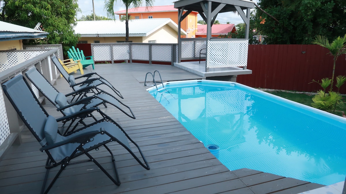 * 1 br bungalow, ensuite bathroom, Full kitchen, living room. * Private gated property safe Fort George area. * Plunge Pool * 5 min from water taxi terminal and the Caribbean Sea. * 20 mins from Intl Airport. * Perfect for stopovers to or from the islands. * Taxi available. * Washer dryer * Fast WiFi * Cold A/C, Hot Showers. * Extra pull out sofa bed. * Outdoor Patio. * Private onsite parking.
