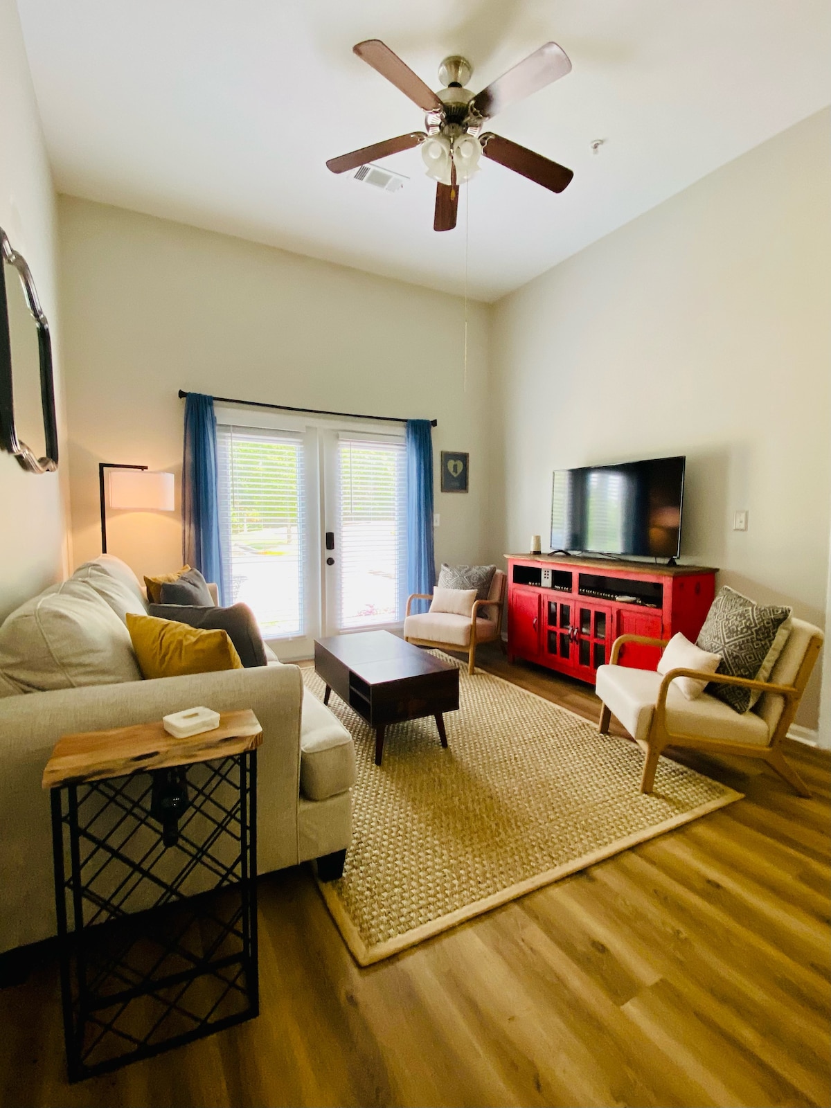 Ընդարձակ ստուդիո բնակարանը ՝ 10 ֆուտ երկարությամբ առաստաղներով և բարձր պատուհաններով, այն դարձնում է լուսավոր և ընդարձակ: Գտնվում է հանգիստ, անտառապատ թաղամասում ՝ ավանից կամ հրապարակից ընդամենը 10 րոպե հեռավորության վրա ։ 150 -179 սմ մահճակալ, երկակի ռեսլեր, գրասեղան, բար, ճաշասեղան, լվացքի մեքենա/չորանոց և խոհանոց ՝ ամբողջական սառնարանով, միկրոալիքային վառարանով և սալօջախով ։ Առանձին բացօթյա պատիո, որը ցանկապատված է ։ Անհատականացված դռան կողպեքի կոդ ՝ հավելյալ անվտանգության համար ։ Roku TV և անվճար WiFi: