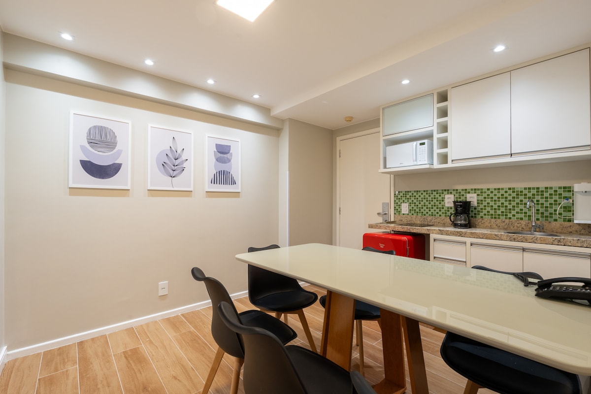 This flat with a lake scenery is ready to make your stay in the capital unforgettable! Situated just 5 minutes from "Esplanada", the apartment offers the perfect balance between centrality and the tranquility of nature by the lake. Additionally, our resort features a range of amenities: two beautiful infinity pools, a jacuzzi, sauna, gym, three coworking spaces, a 24-hour convenience store, 24-hour laundry, and an elegant pier by the lake with a view of the JK Bridge.