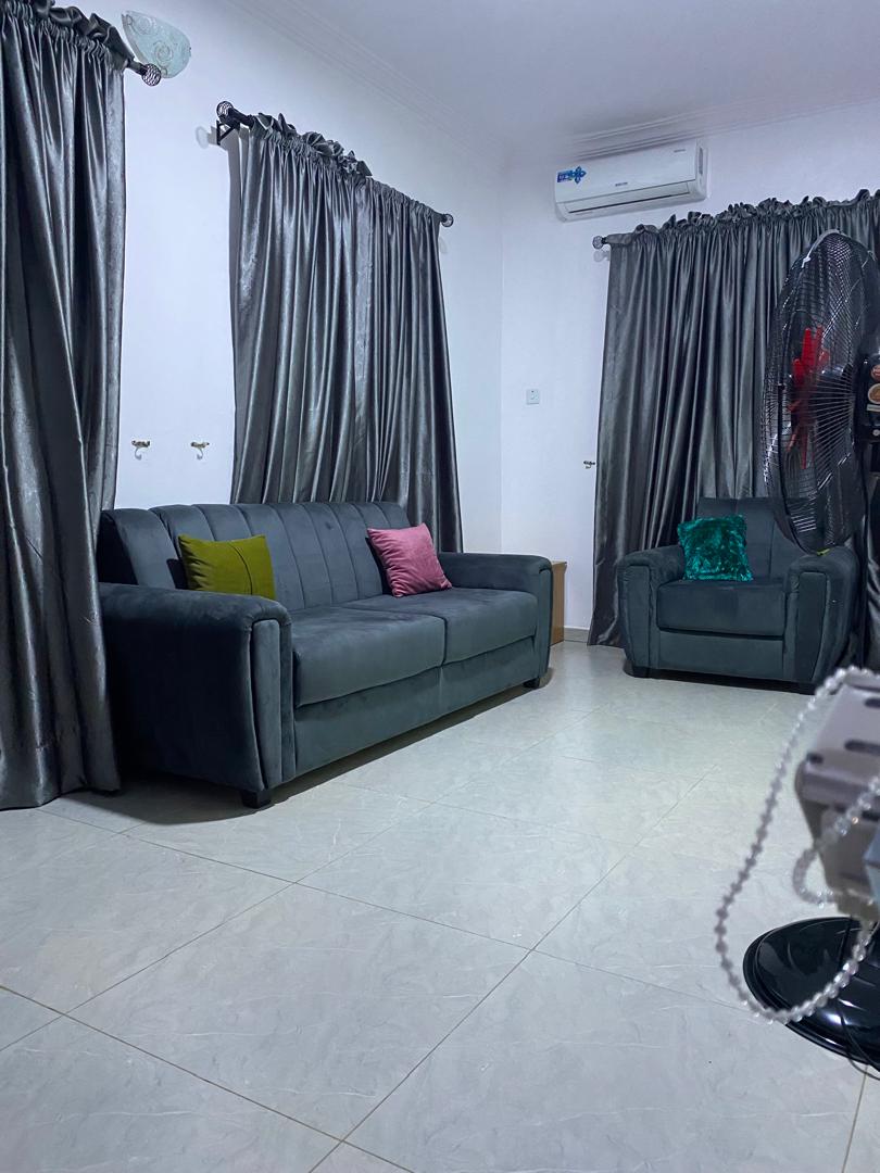 Spacious sitting room and royal ensuite room with Super king bed, modern bathroom and toilet 🚽. Very clean and standard apartment. Royal Pent House gives you all modern comfort beyond your imagination with unlimited high speed WiFi, 43inchSmart Tv in the bedroom and 55inch Smart Tv in the sitting room, YouTube, Netflix, DSTV. Comfortable Sofa, Water heater, Water kettle, Microwave, Cooking gas. Smoke Alarm, Mono dioxide Alarm, 24/7 power. , Cctv, maximum security with 24/7 security personnel