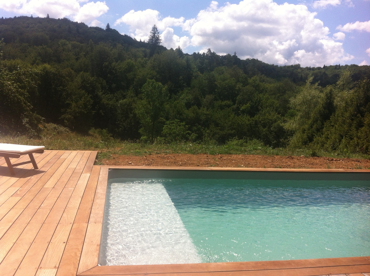 Cosy Gîte: Swimming pool, and view of the Valley