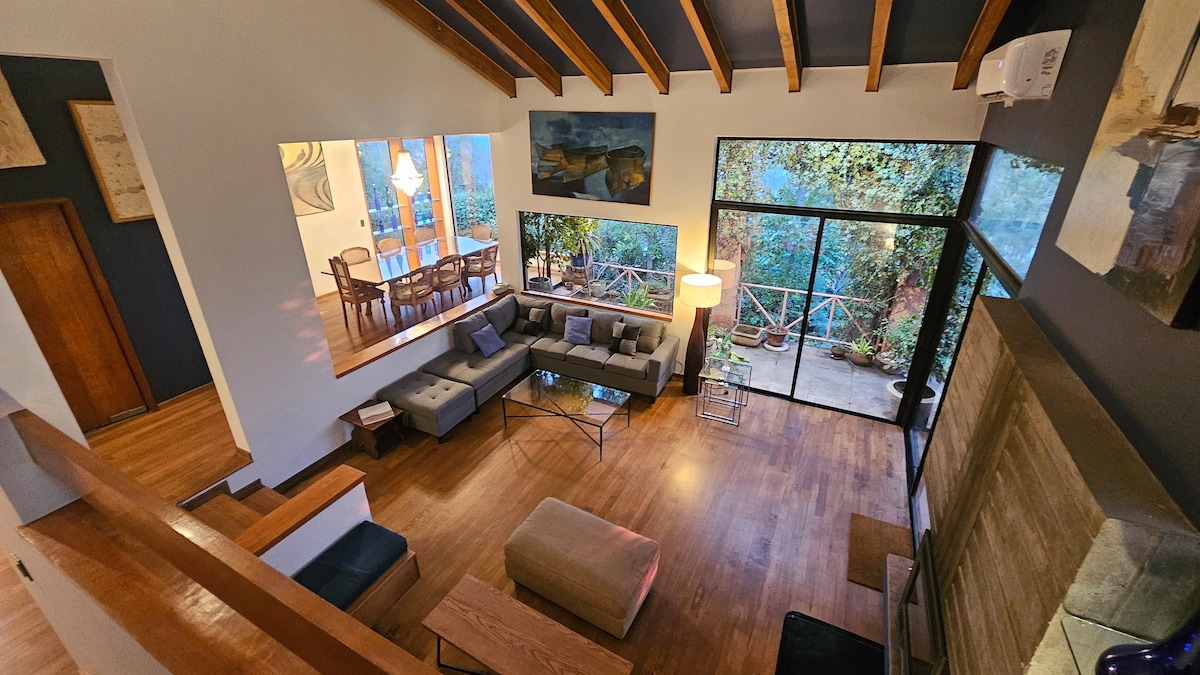 Escápate a esta casa única en La Dehesa, ubicada en un amplio terreno rodeado de naturaleza. Disfruta de total privacidad con todas las comodidades que necesitas, amplios espacios y un entorno tranquilo, ideal para desconectar y relajarte. Tiene también una gran conectividad con la Costanera Norte y importantes centros comerciales de la ciudad. La casa se encuentra full equipada, tiene Smart TV, equipos de Aire Acondicionado, Estacionamiento, BBQ a gas y un buen jardín.