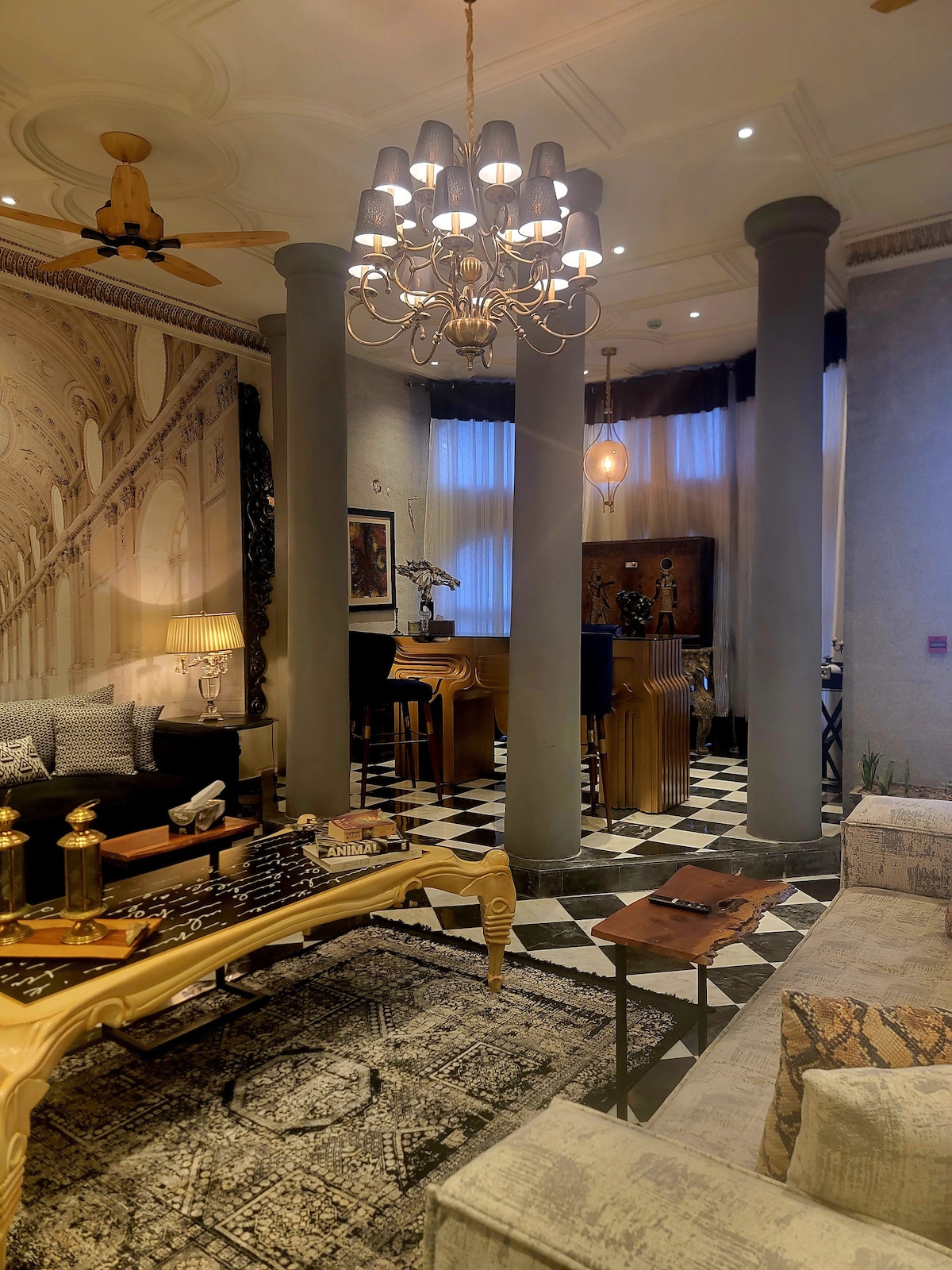 ★AWARDED SUPERHOST BY AIRBNB FOR OUR GUEST RATINGS! ★ 1 kitchen, 1 breakfast kitchen, 2 living rooms, 2 terrace, dining room, tv lounge (back and front facing). Amazing location, very close to restaurants, mosque, malls (packages mall), and international standard supermarket. 15 minutes from Lahore international airport. 5 minutes from motorway and ring road, and gold crest mall . Parking space for two cars and 24/7 houseboy service and security. ★ check us out on insta @thevillainndha