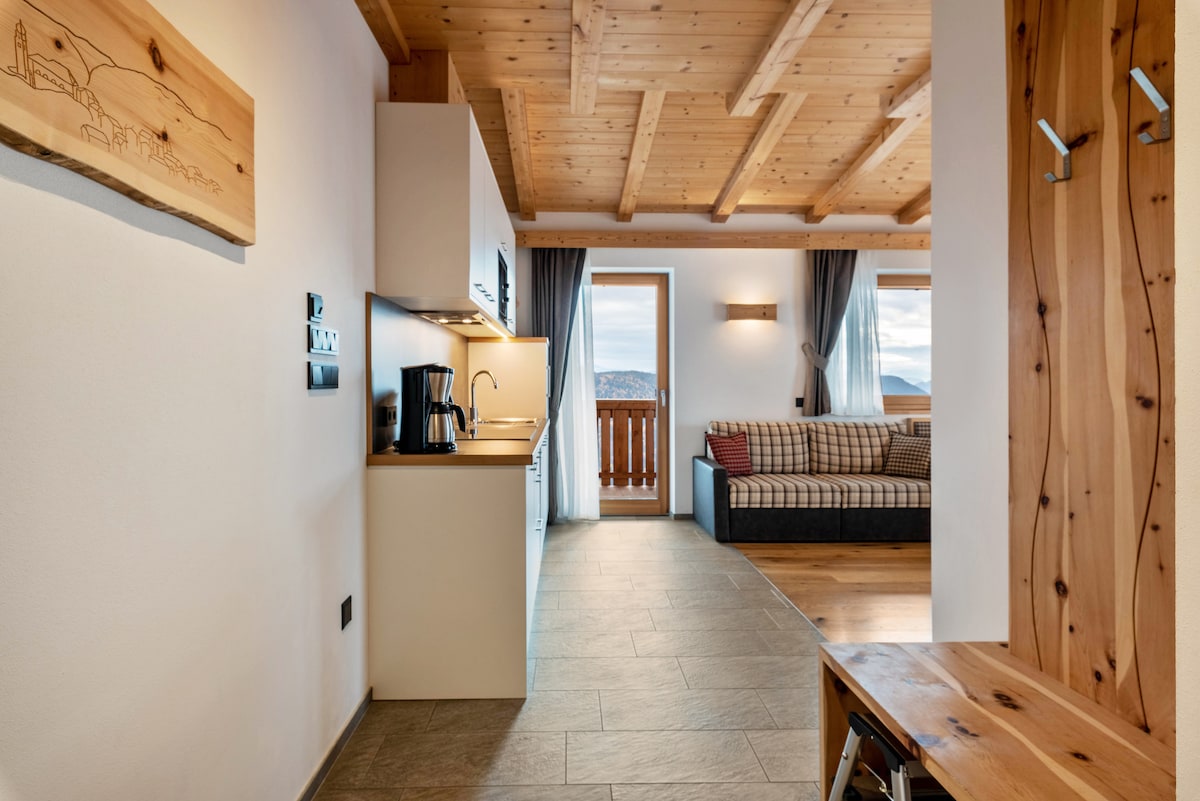 The apartment Thalerhof Naturae Lignum is situated in Unterinn Ritten, which is 15 minutes by car (11 km) away from Bolzano/Bozen in South Tirol, Italy. It boasts a spectacular view of the surrounding Alps, along with newly renovated interior design, thus making it a wonderful getaway. The 45 m² apartment consists of a living room, a well-equipped kitchen with a dishwasher, 2 bedrooms as well as one bathroom and can therefore accommodate 4 people.