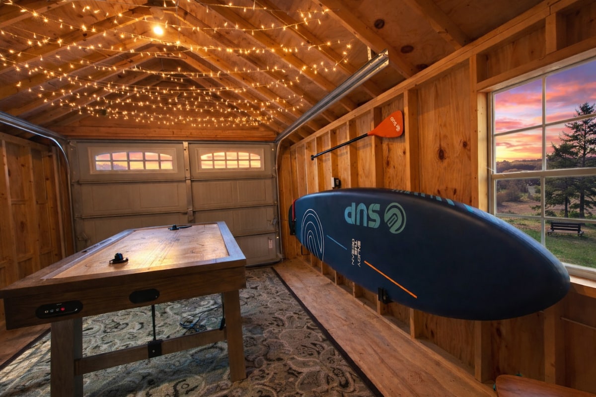 Դահուկային սպորտի/թյուբինգի սեզոնը շատ մոտ է։ Փախեք դեպի «Խավարում »՝ սկանդինավյան ոգեշնչված ժամանակակից տնակ, որը գտնվում է 5 հեկտար մակերեսով և նայում է անվերջ անտառներին ։ Խավարումն առաջարկում է մտածված հարմարություններ, ինչպիսիք են վառ գազի բուխարի, զվարճալի արկադային կոնսոլ, սկավառակային գոլֆ, լազերային պիտակ և ադիբուդիի զամբյուղ ՝ կինոյի գիշերների համար ։ Քանդեք ջակուզին աստղերի տակ կամ վայելեք լուսադիոդային եռանկյունաձև հմայքը ։ «Խավարում» բոլոր աստղերը միավորվում են իսկապես կախարդական այցի համար ։