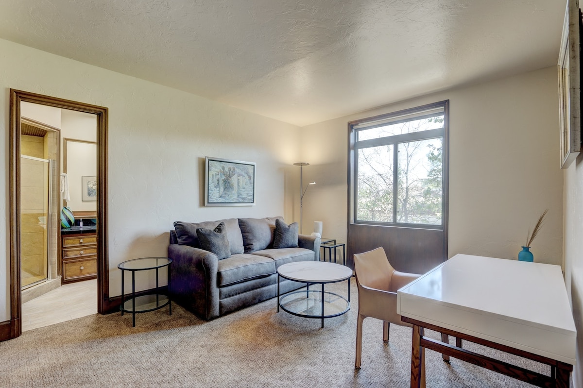 The Sunlight Suite is space #2 in the OK City FAB House. The suite is about 1000 sq ft of private living space that includes a living room, dining area with furnished walk out patio, full kitchen, washer and dryer, walk-in closet and large bedroom with bathroom and reserved covered parking space. It is near restaurants, Lake Hefner biking trails and interstate access. Free WIFI; no TV. Due to sensitivities of nearby guests there can be no pets, NO SMOKING, MJ or FILMING inside the building.