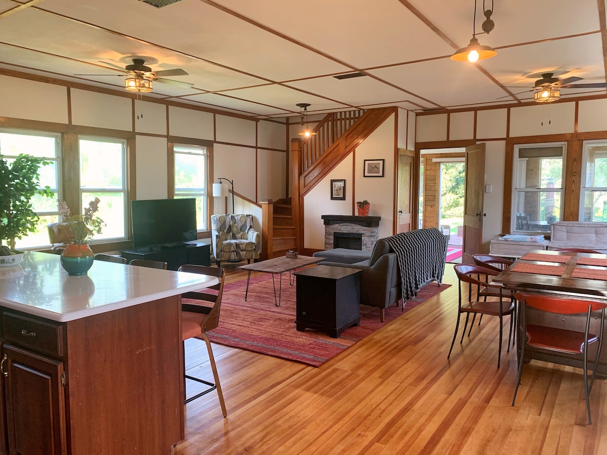 Անտառում ձեռքով պատրաստված այս գեղեցիկ տունը, որը պատված է լույսով ողողված պատուհաններով, ունի 2 ննջասենյակ և 2 ամբողջական լոգարան, և մեծ տախտակամած, որը կանգնած է ֆեյստային հոսքի դիմաց ։ Այն ունի 10 լեռնոտ ակր անտառներ ՝ թափառելու սեփական ուղիներով: Աշխատեք, հանգստացեք և խաղացեք իր ոգեշնչող խոհանոցում և լոֆթային տարածքներում, որոնք համալրված են ալբոմներով, ֆիլմերով, գրքերով, արվեստի պարագաներով և գործիքներով ։ Բնությամբ պարուրված, բայց ընդամենը 10 րոպե ճանապարհ դեպի տեղական թեժ կետեր, այդ թվում ՝ Նեղոսբուրգ, Կալիկուն, Սքինների ջրվեժ և Բեթել Վուդս ։