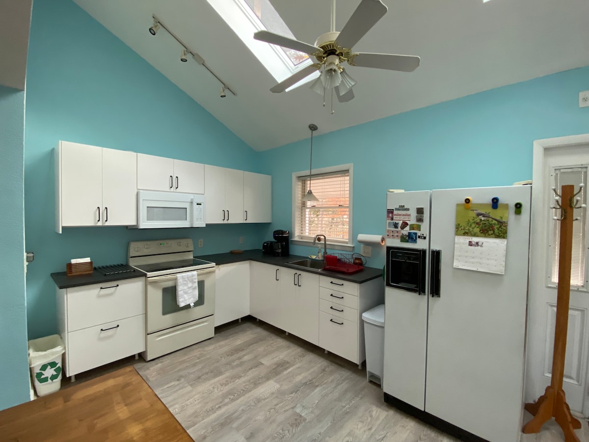 Այս լիովին կահավորված մեկ ննջասենյակով «ավտոտնակի բնակարանը» կցված է մեր հիմնական տանը, բայց դուք կունենաք ձեր առանձին մուտքը: Կարող եք ակնկալել, որ սա կլինի ձեր տունը ՝ տնից հեռու ՝ բոլոր գործնական և անհրաժեշտ պարագաներով: Առաջին հարկի մուտքի համար աստիճաններ չեն պահանջվում ՝ բացառությամբ դռան դիմաց գտնվող երկու փոքրիկների ։ Հանրաճանաչ է ավելի կարճ այցերի համար, բայց ավելի քան հարմար է երկարաժամկետ այցերի համար ՝ բավականաչափ պահեստով, կոմբո W/D - ով, կոմպակտ D/W - ով և հատուկ HVAC համակարգով ։ Գտնվելու վայրը հիասքանչ է ։