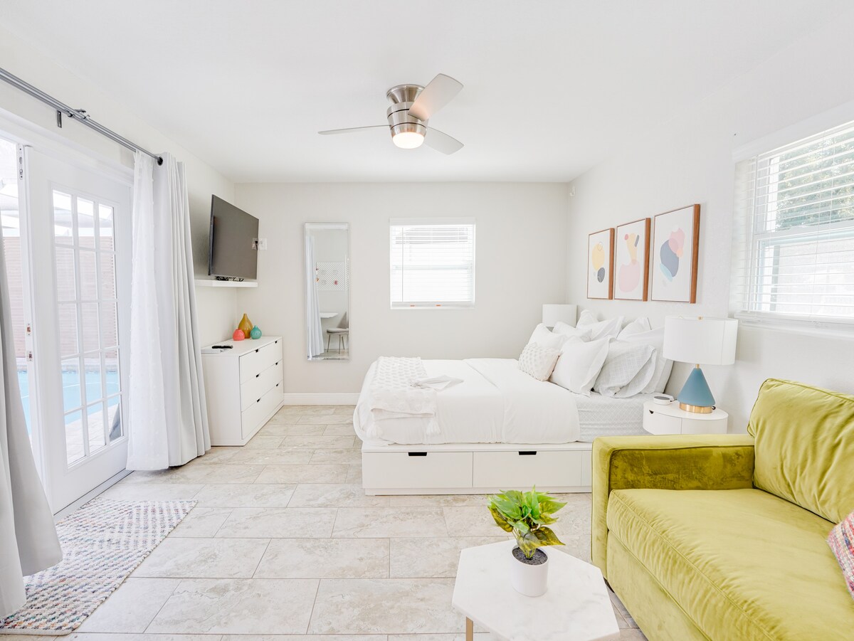 Բարի գալուստ ձեր խաղաղ հանգստի վայր Սիտրուս Պարկում, որտեղ ժամանակակից հարմարավետությունը միահյուսվում է մտածված դիզայնի հետ։ Թամպայի միջազգային օդանավակայանից ընդամենը 11 րոպե հեռավորության վրա գտնվող և տարածքում անվճար կայանատեղի ունեցող այս նորաձև և մասնավոր ստուդիան կատարյալ վայր է զույգերի, միայնակ ճանապարհորդների կամ գործարար հյուրերի համար, որոնք հանգիստ և թարմացնող հանգիստ են փնտրում։ Դուք կգտնվեք հանգիստ, անվտանգ և կենտրոնական թաղամասում և կվայելեք առանձին մուտք, անվճար կայանատեղի տարածքում և հեշտ հասանելիություն ռեստորանների, մթերային խանութների և Թամպայի գլխավոր տեսարժան վայրերի։