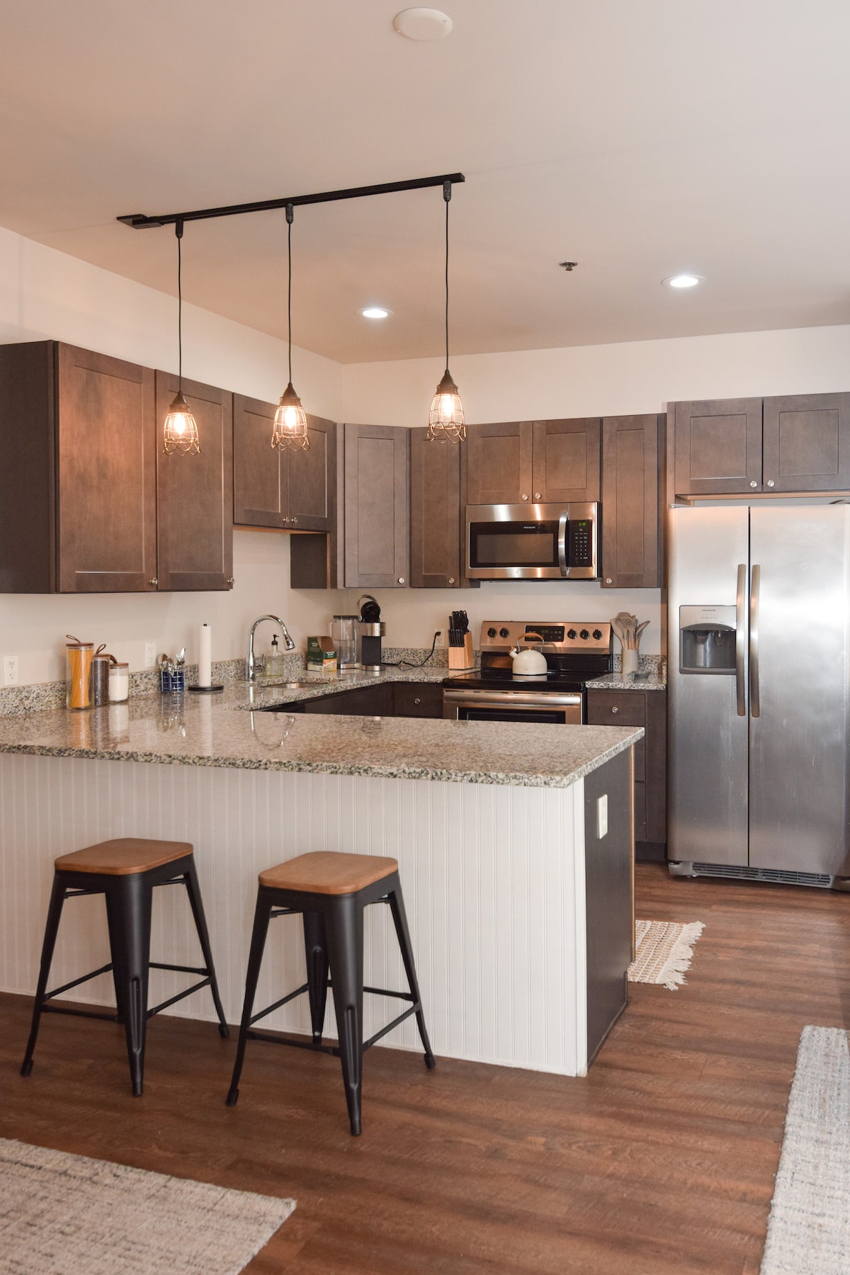Come see the beautiful town of New Oxford! This apartment is just two blocks from the town circle and the best coffee and bakery in PA! This private 1 bedroom apartment can sleep up to 4 guests - which includes 1 king bed, and can add another king bed or two twin beds in the living room. The apartment also includes 1 bathroom with a shower/bath, washer and dryer, a full kitchen and a living room with 55" TV, wifi, and more.