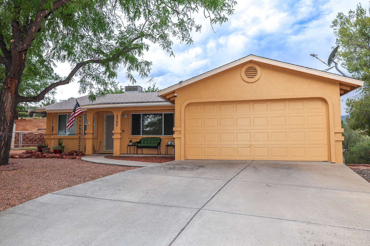 Հանգստացեք, հանգստացեք և հանգստացեք Արիզոնայի Ռիմրոքի խաղաղ գյուղական վայրում գտնվող Hilltop Haven Home - ում ։ Ցնցող համայնապատկերային տեսարաններ, հարմարավետ դեկոր, հեշտ մուտք և կենտրոնակայան ՝ ընդամենը 20 րոպե մեքենայով դեպի Սեդոնայում գտնվող Բել Ռոք, 20 րոպե մինչև Կամպ Վերդե և Քոթոնվուդ, 2 1/2 ժամ մինչև Մեծ կիրճ ։ Տունը հագեցած է մտերիմների հետ կապի համար ՝ հանգիստ, խաղաղության և անապատային հանգստության մթնոլորտում: