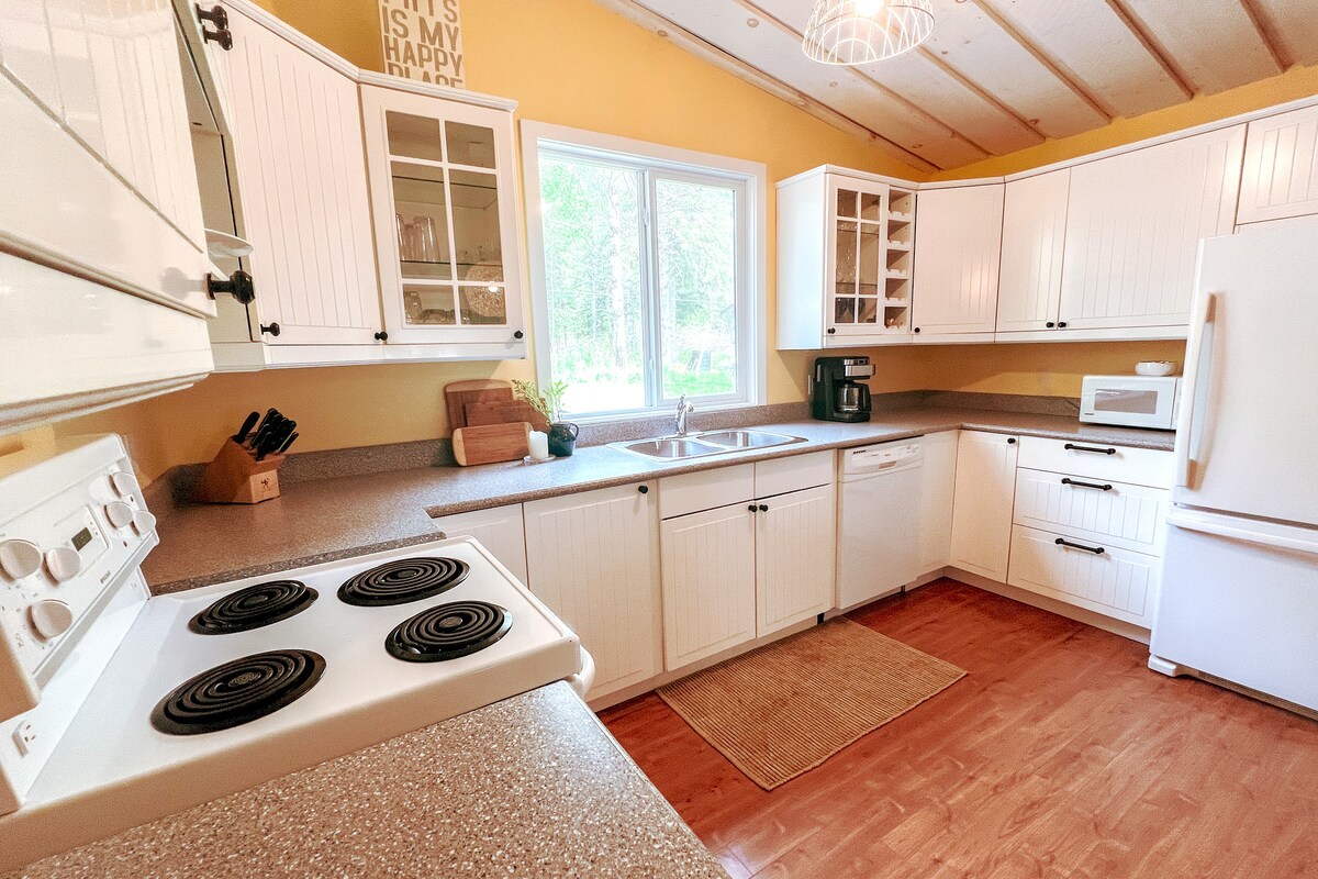 Ընտանիքին և ընկերներին բերեք լիճ ՝ զվարճանալու և արկածների համար: Ոտքով արահետներ և լողափեր, կայակինգ, ձկնորսություն և լող ։ Մեծ հետևի տախտակամած ՝ դեպի ծովափնյա անտառը, վայրի բնության շատ այցելուներ ։ Պատրաստեք խորովածի խնջույք և ողջունեք բարեհամբույր եղջերուներին, որոնք գալիս են այցելության ։ Գիշերեք և հանգստացեք մինչև տաք խարույկ ՝ լոզունգների ձայներով ։ 2 կամ ավելի գիշեր տևողությամբ ամրագրումները կներառեն վառելափայտի ամբողջական աղբաման (20 $ արժեքով) 2 թիավարման վահանակ և 6 կայակ(170 $ արժեք )՝ Ճագարների լճում օգտագործելու համար