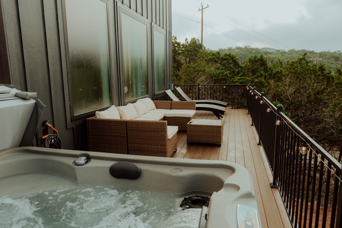 Enjoy a peaceful stay in our cozy, fully furnished bungalow while taking in the picturesque scenery from your own private jacuzzi and balcony. The perfect getaway for nature lovers and those seeking a peaceful escape. Centrally located near Lake Dunlap and minutes away from both the Comal and Guadalupe rivers, downtown New Braunfels and the Historic Gruene District. Book now and experience the beauty and charm of New Braunfels like never before!