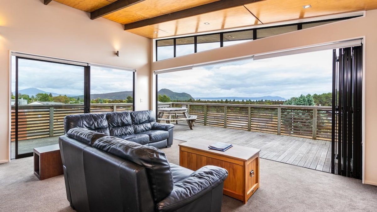 Այս ընդարձակ հանգստյան տնից բացվում է Տաուպո լճի հիասքանչ տեսարան, և այն կատարյալ է ընտանիքների և խմբերի համար Երեք մակարդակներում 8 ննջասենյակով և 3,5 լոգասենյակով բավականաչափ տեղ կա հանգստանալու և վայելելու համար Ընդամենը 50 մետր դեպի լճի ափ և կարճ զբոսանք դեպի քաղաք ՝ դուք մոտ կլինեք ակցիային ՝ միևնույն ժամանակ վայելելով խաղաղ շրջակայքը Ներկայացված է Urbanlist-ի «2025 թվականի լավագույն 20 Airbnb-ները Տաուպոյում» ցուցակում», Այն բանից հետո, երբ ուսումնասիրեք այն ամենը, ինչ առաջարկում է Taupō - ն, հանգստացեք սպա կենտրոնում կամ բուխարիի մոտ