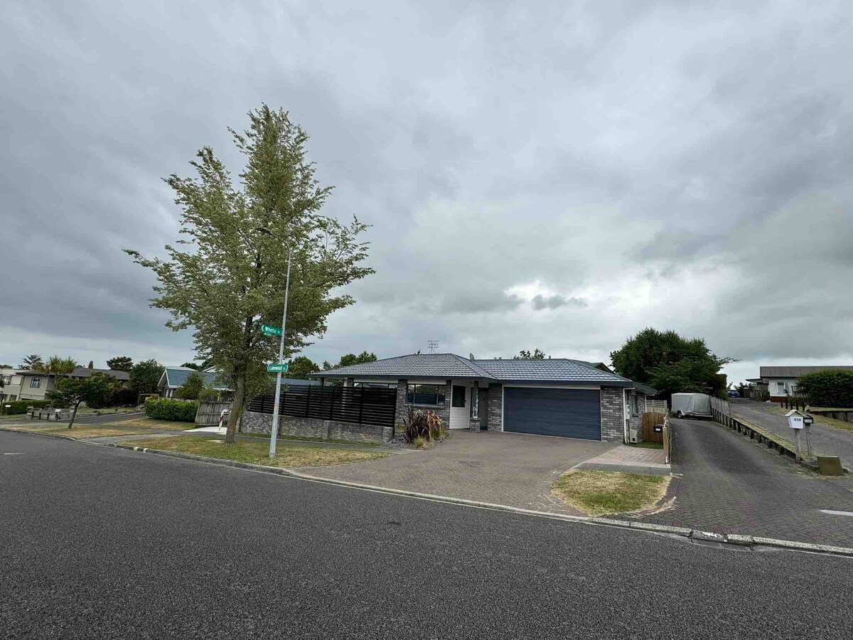 Այս նոր հանգստի տունը, որը նախագծել է մրցանակակիր Architects Designgroup Stapleton Elliott-ը, մանրամասնորեն կահավորված հանգստի տուն է և հանգստանալու կատարյալ վայր։ Դեպի լճի ափ ոտքով 3 րոպե քայլելով ՝ կատարյալ է արկածների կամ հանգստի համար ։ Հարմար է ընտանիքների և խմբերի համար. 2 երկտեղանի, 1 մեկտեղանի, 4 երկտեղանի մեկտեղանի մահճակալներ, 2 փակ մահճակալ և 3 լոգասենյակ Հրթիռային էսպրեսո, բատուտ, Tesla էլեկտրամոբիլի լիցքավորիչ Ոտքով 15 րոպե մինչև խանութ Մեքենայով 15 րոպե մինչև Տաուպո
