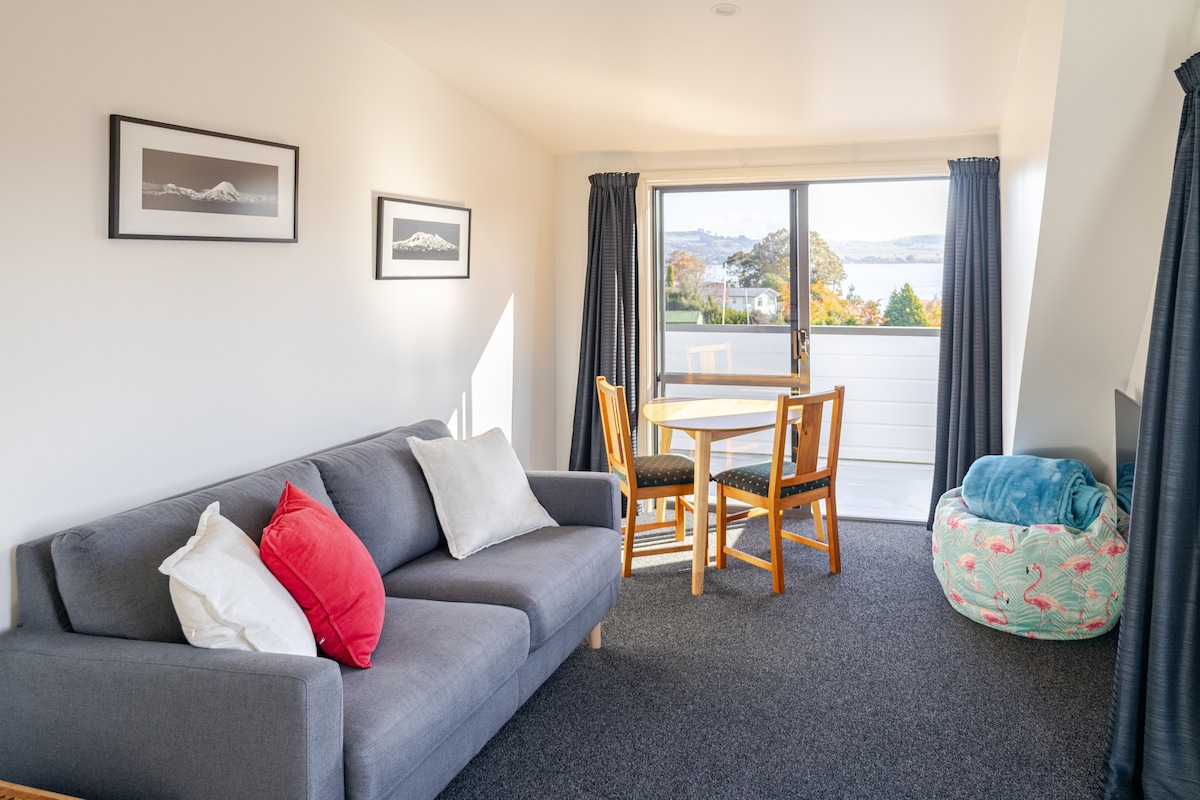 Հեշտացրեք այս անկրկնելի, անխռով հանգիստը ։ Բարձրացեք երկնքում ՝ դեպի լիճ տանող վիստայի հետ և տեսարան դեպի տարածք ՝ Մաունթ Ռուապհուին տեսնելու համար ։ Առանձին մուտք դեպի առաջին հարկի հյուրերի թևը ։ Բոլորովին նոր և ժամանակակից ։ Տեղափոխվելու սեփական լաունջում, ննջասենյակում, մեծ սալիկապատ ցնցուղարանով տեղաշարժվելու համար, շրջեք զգեստով ։ Խոհանոցիկ (առանց խոհարարության )՝ միկրոալիքային վառարանով, սառնարանով, մայրցամաքային նախաճաշով ։ Հյուրերի պատիոն, որը կառուցված է նստատեղով, գրավում է կեսօրվա արևը ։ Տաուպոյից մոտ 10 րոպե հեռավորության վրա ։ Փորձեք այլ բան ։