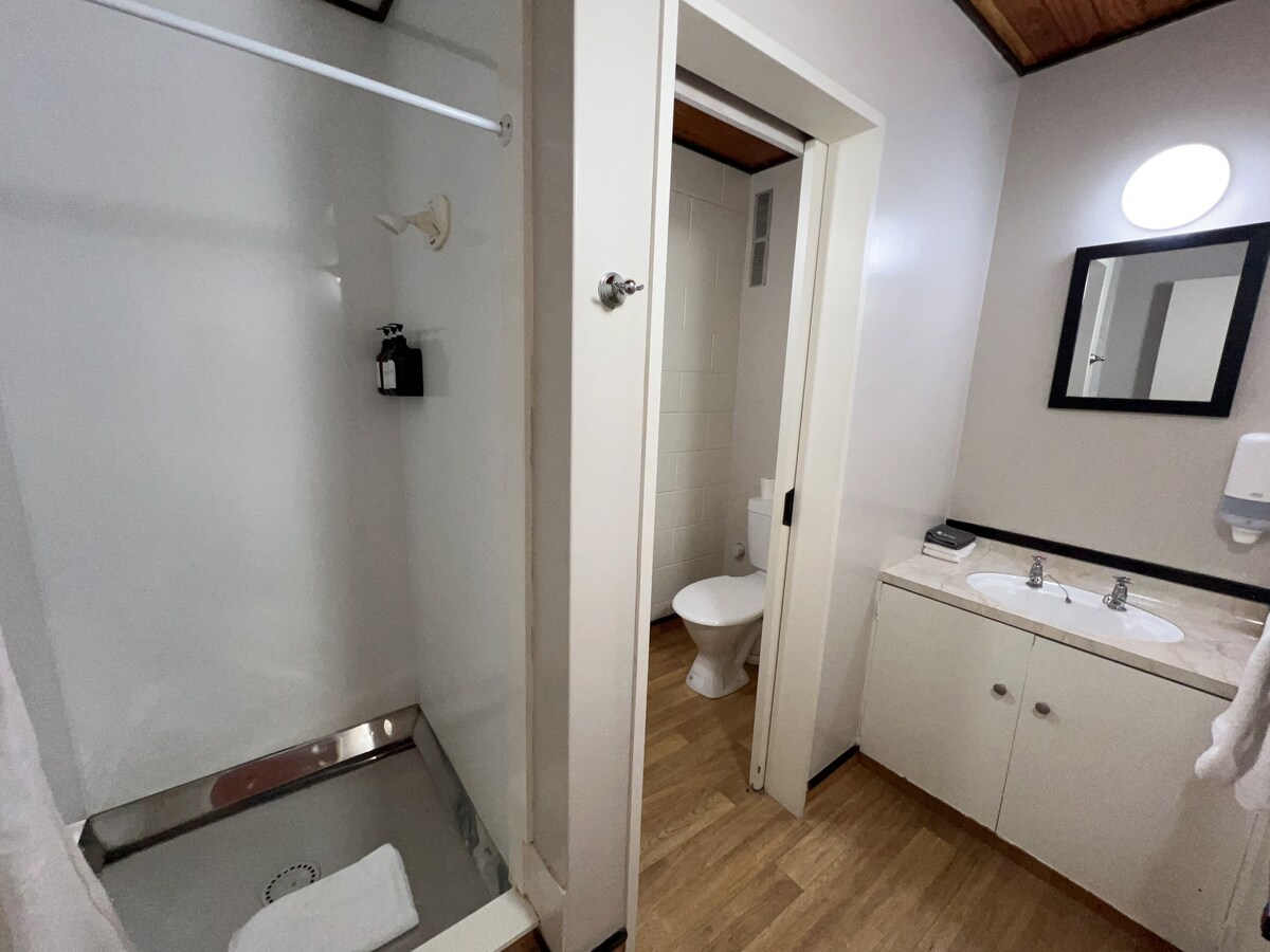 Մեր տարածքը, որը գտնվում է քաղաքից ընդամենը 10 րոպե հեռավորության վրա, տեղակայված է 5 ակր մակերեսով զբոսայգու պես տարածքում. ծանոթացեք մեր ոչխարների, հավերի և բարեկամ կատուների հետ։ Դուք կգտնվեք մեր տան հյուրերի թևում, որտեղ կա առանձին մուտք, լոգասենյակ, նախաճաշի անկյուն և արագ, անսահմանափակ Wi-Fi՝ Netflix-ով, Prime-ով, Disney-ով - Կցասայլակի, նավակի կայանատեղի - Սեղանի խաղեր և լողափնյա հանդերձանք - Բուխարի՝ ձմեռային հանգստի համար - Հարմար չէ երեխաների կամ մանուկների համար Կատարյալ է հանգստանալու, քաղաքների միջև կանգ առնելու կամ Տաուպո շրջանը ուսումնասիրելու համար